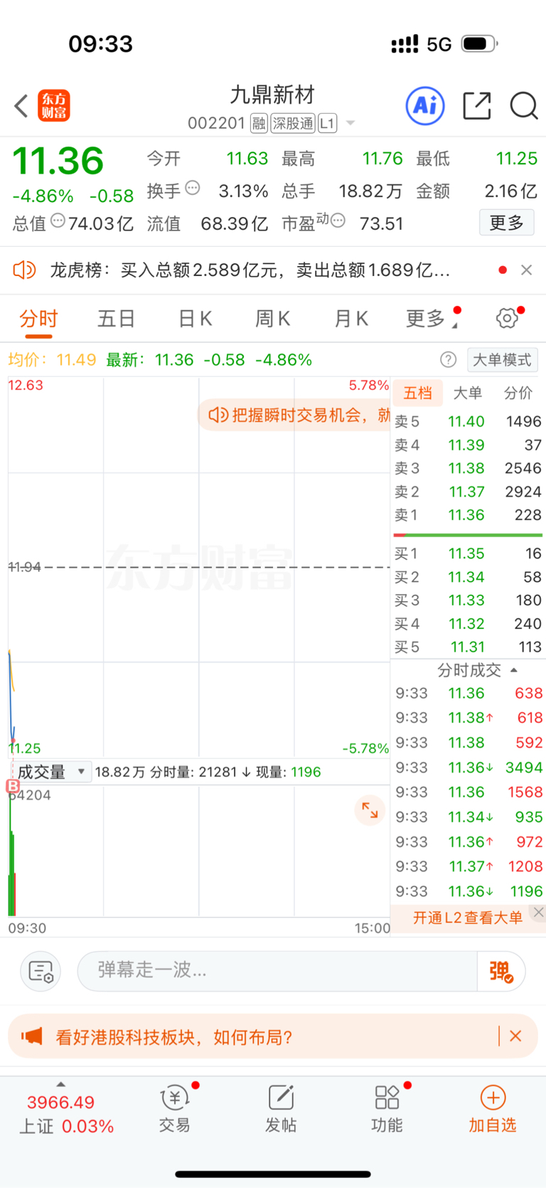 11.36水下低吸介入$九鼎新材(SZ002201)$