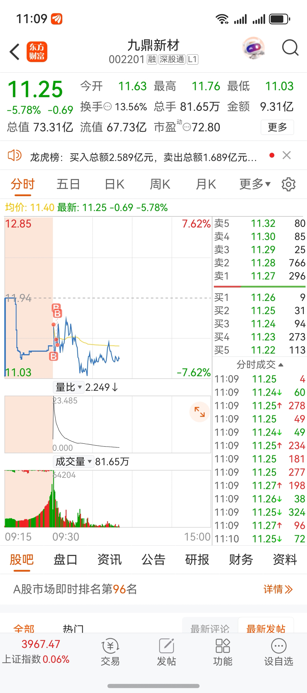 $九鼎新材(SZ002201)$ 大哥,我是认真的,昨天都没有T,主力大哥带我跨年……