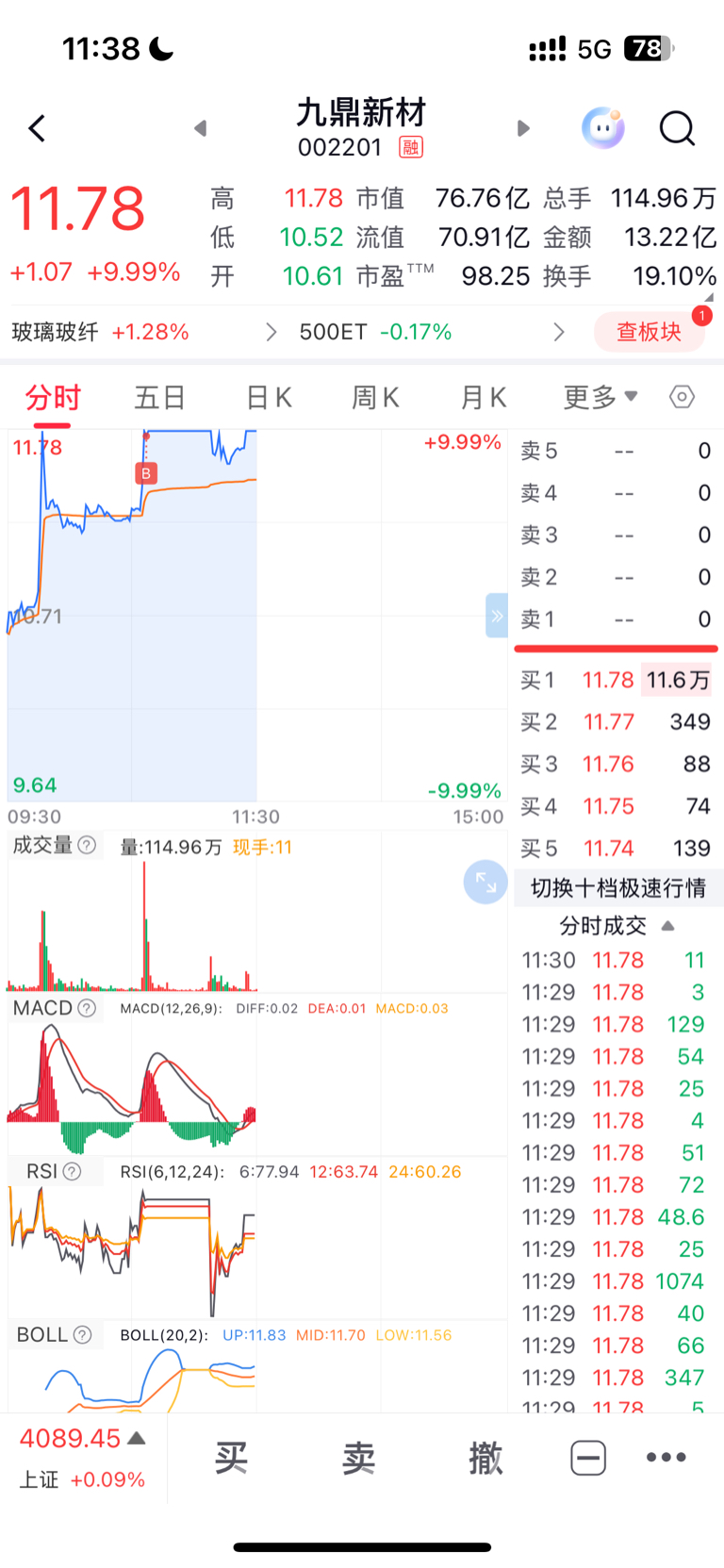 $九鼎新材(SZ002201)$ 早盘10.14进了岩山,打板了九鼎,15.02吸了翠微,19.97进了永安,出了福晶,8.92补了格林美昨天打板进的,请教一下超短大佬帮我分析一下呢?