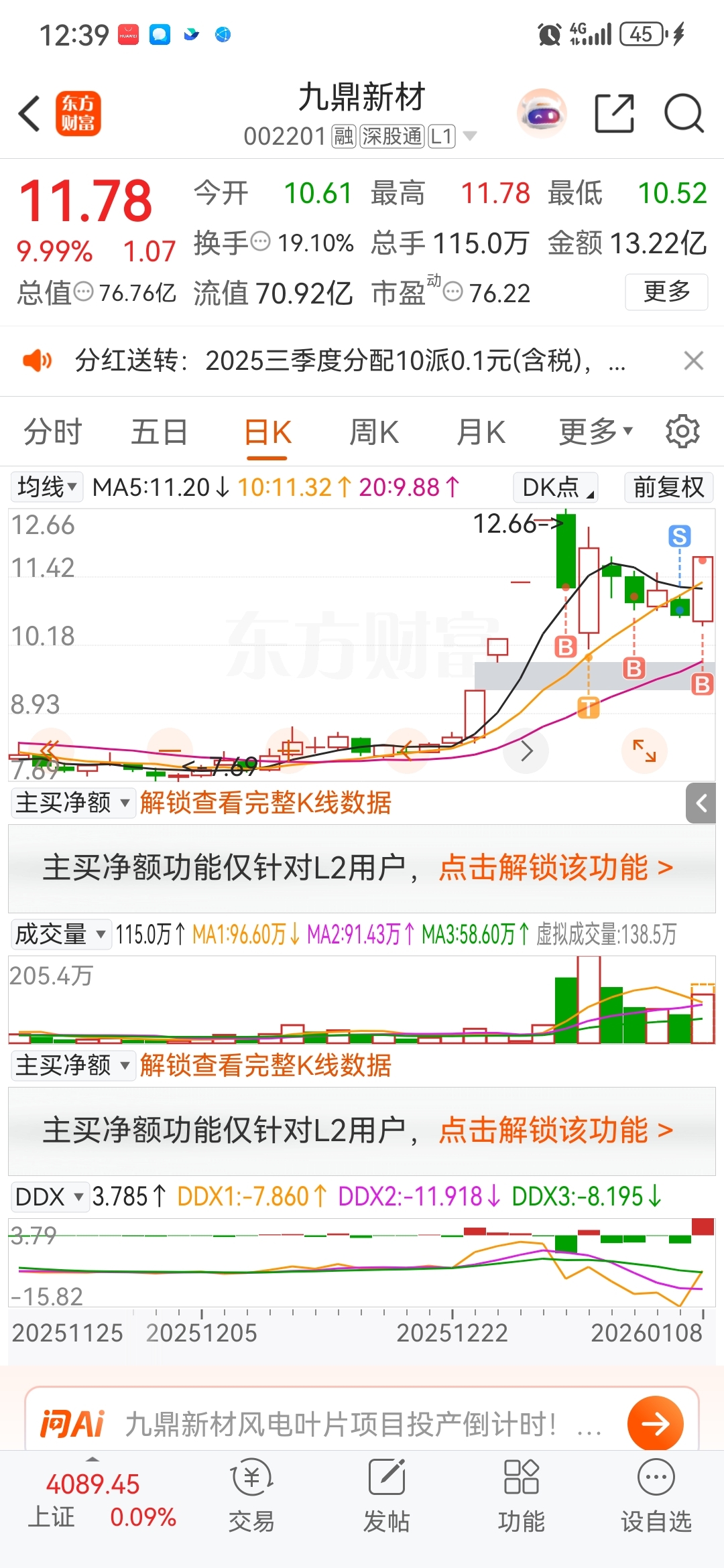 $九鼎新材(SZ002201)$ 服了我自己,昨天水下割了亏6个点,今天打板买进去