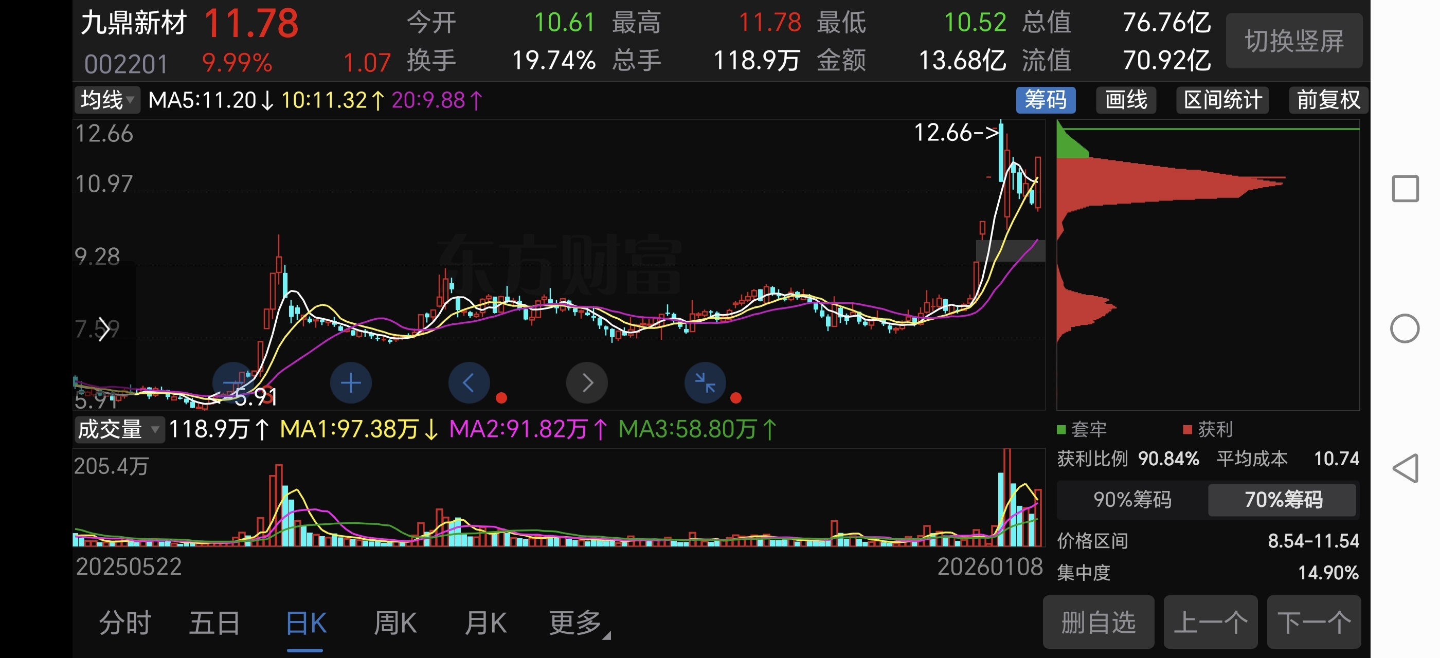 $九鼎新材(SZ002201)$ 筹码峰哪里这么长的一个是谁被套了