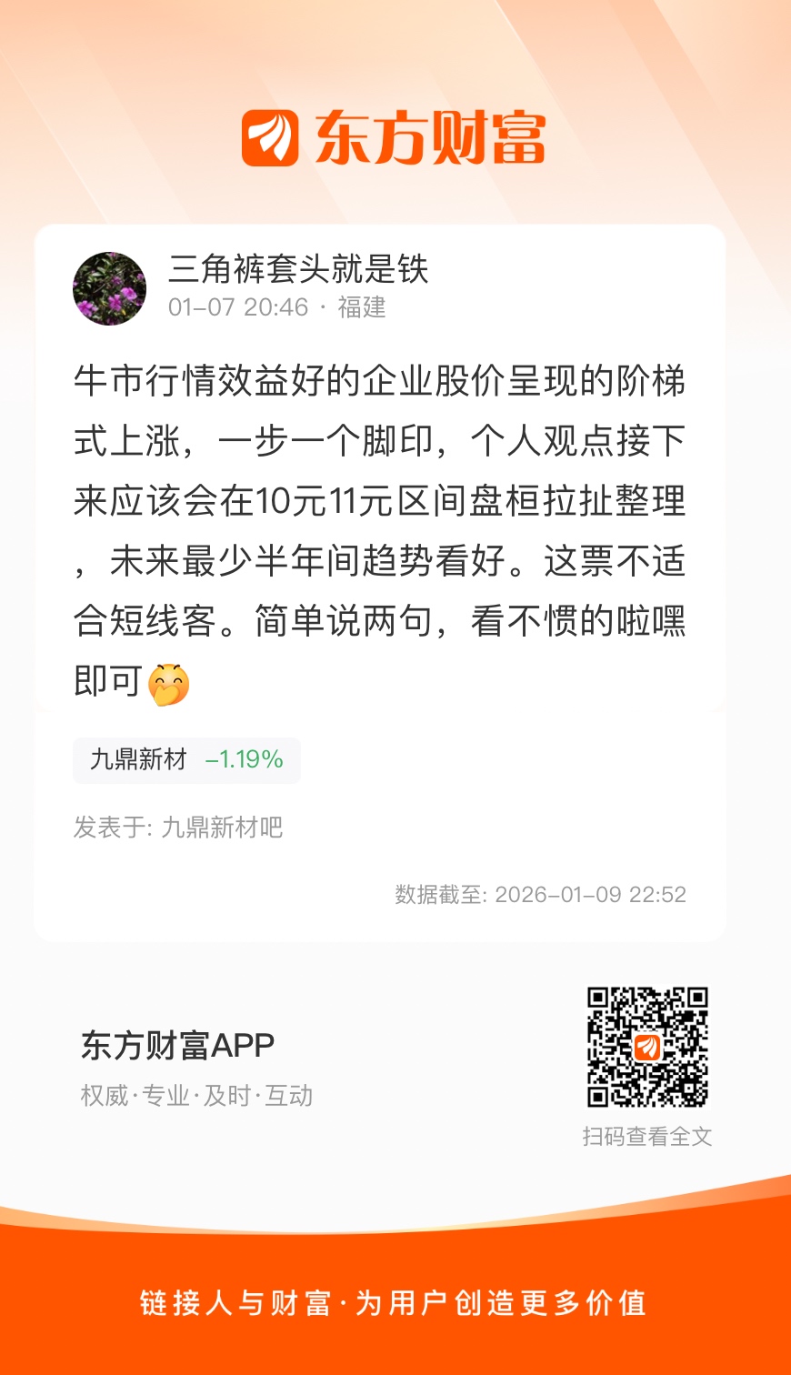 温馨提示: 1.根据《证券法》规定,禁止编造、传播虚假信息或者误导性信息,扰乱证券市场;2.用户在本社区发表的所有资料、言论等仅代表个人观点,与本网站立场无关,不对您构成任何投资建议。用户应基于自己的独立判断,自行决定证券投资并承担相应风险。《东方财富社区管理规定》