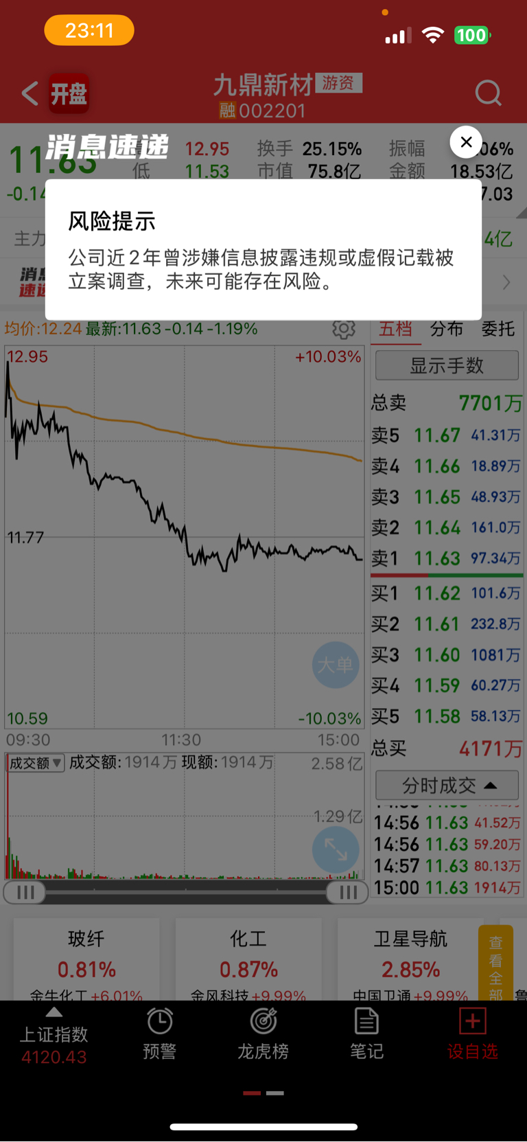 $九鼎新材(SZ002201)$ 周六才看到这个信息,今天开盘就走了。
