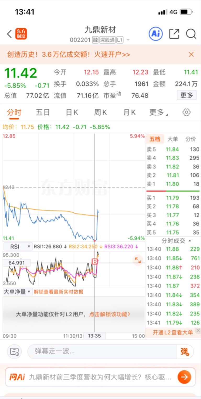 午盘选择低吸介入$九鼎新材(SZ002201)$ #强势机会# #实盘记录# #投资干货# #投资随笔#