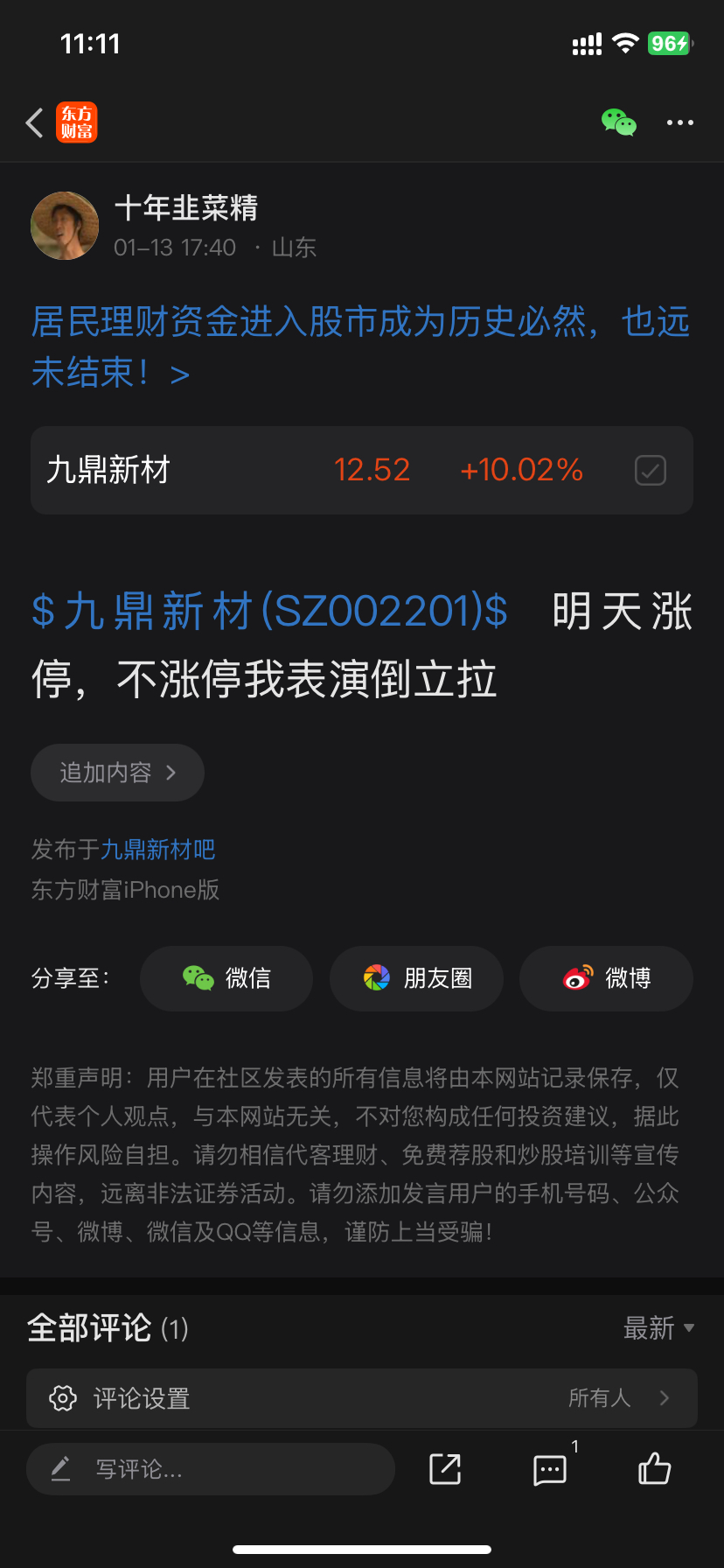 $九鼎新材(SZ002201)$ 昨天有人看到我帖子吗?