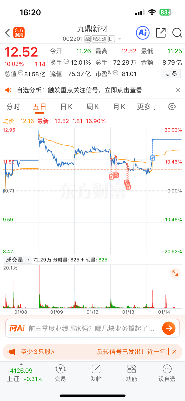 $九鼎新材(SZ002201)$ 清了三分之一看明天咋说