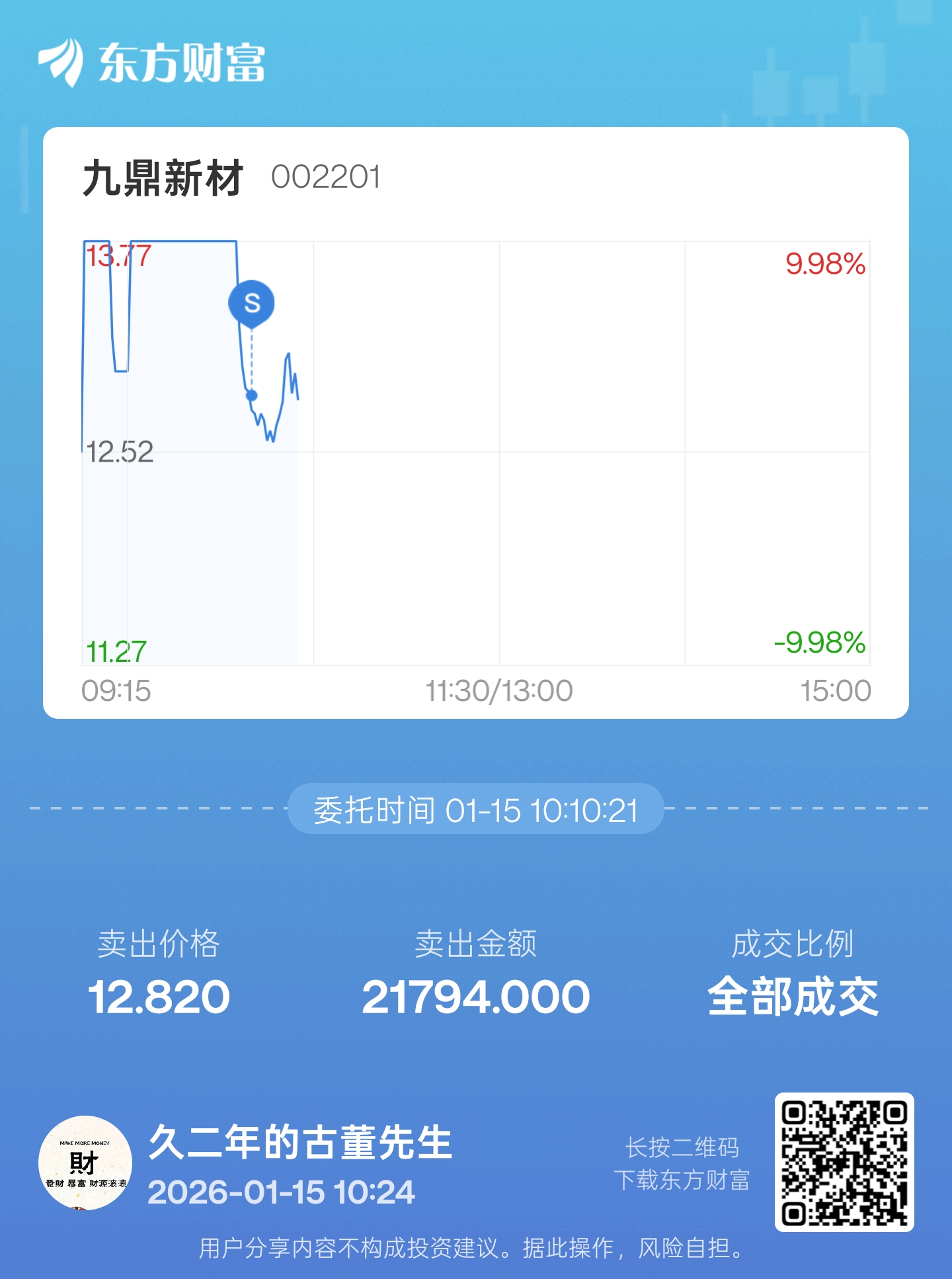 $九鼎新材(SZ002201)$ 被套了4年了,还差1个点就回本,被洗出来了。