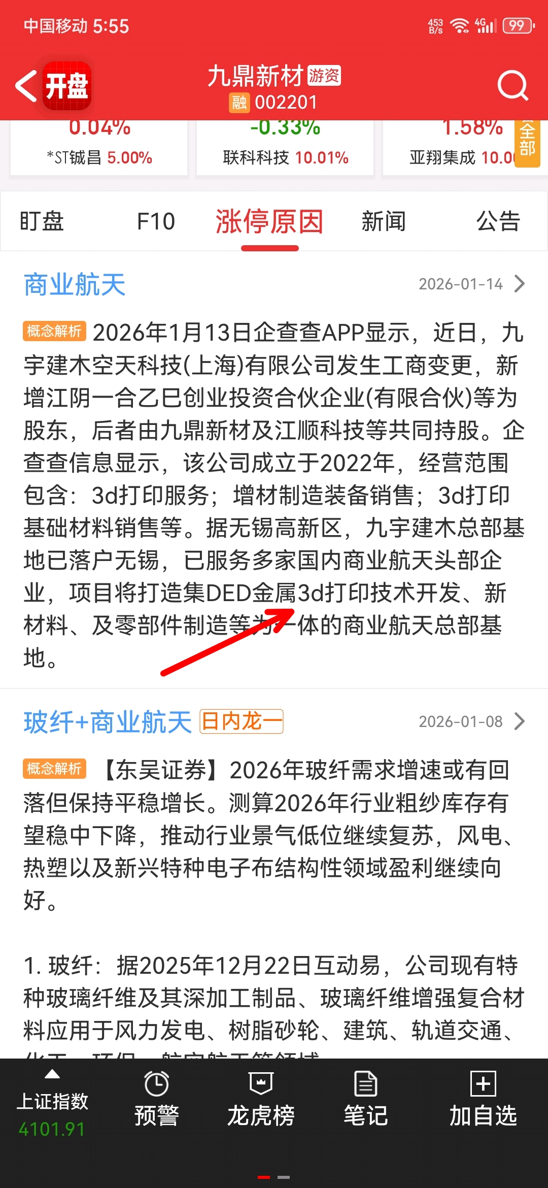 $九鼎新材(SZ002201)$ 这就差直接把名字说出来了,妥妥的核心概念啊,有逻辑支撑,有业绩,这票怕什么。不是涨停就是大幅度震荡,每天跟着主力高抛低吸就行了,如果商业航天有二波,这绝对是绕不过去的一直好票。