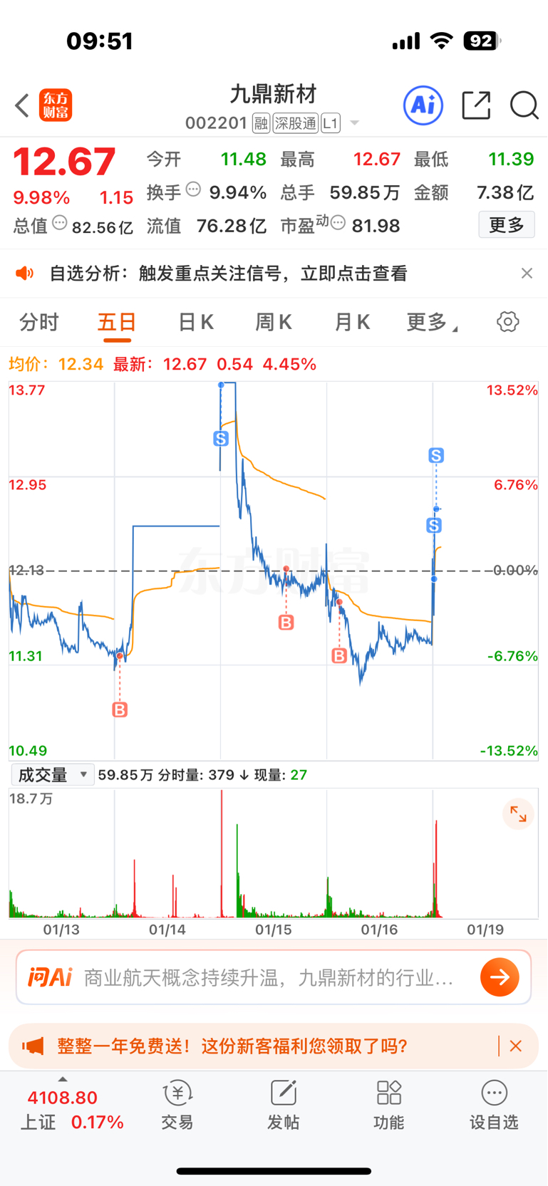 $九鼎新材(SZ002201)$ 九鼎是我的幸运股,又在里面薅一笔