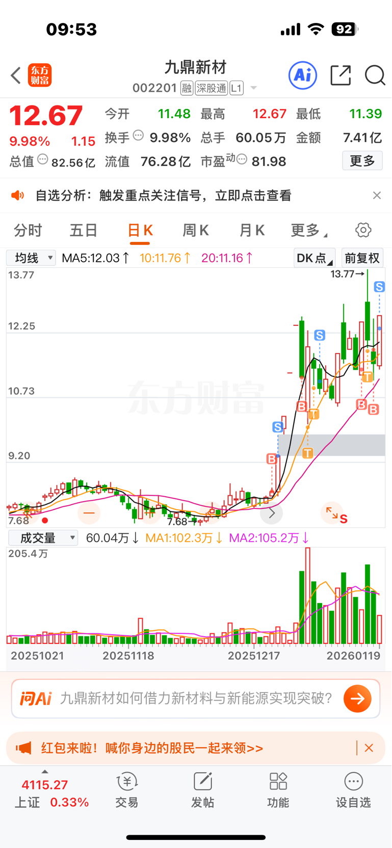 九鼎是俺的幸运股,自从买了九鼎,买什么什么涨,