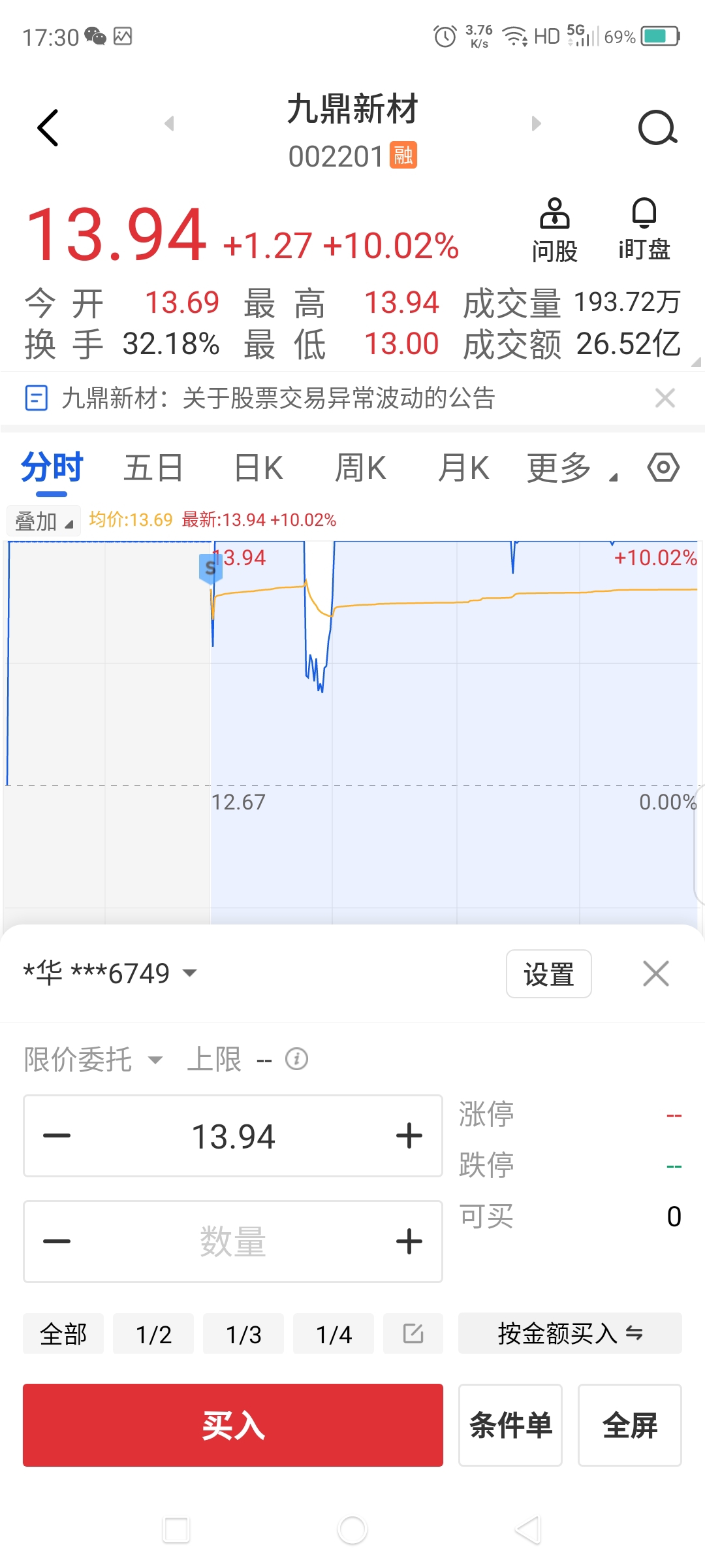 $九鼎新材(SZ002201)$ 哎, 被洗掉了,少赚四个点,明天肯定还会有溢价,但是不会再追进去了。