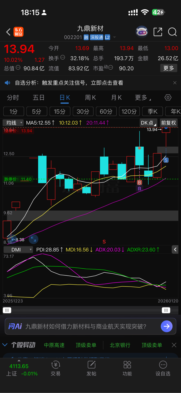$九鼎新材(SZ002201)$ 这行情除了被套,涨停,绝对不能格局一不小心第二天可能就是大面