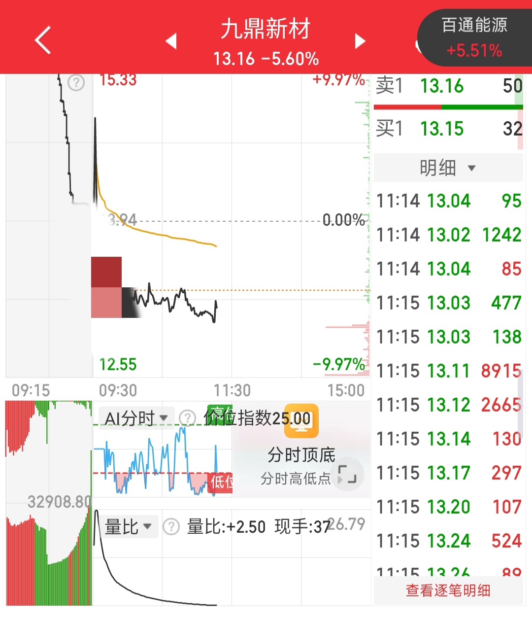 $九鼎新材(SZ002201)$ 13.03我的没成交,这是护盘资金吗?有懂的么?2笔1万手直接拉1毛钱!这是高度控盘?还是低价抢筹?人家钱多,我抢不过别人?13左右,再跌我准备买点!#复盘记录# #炒股日记# #实盘记录# #周度策略#