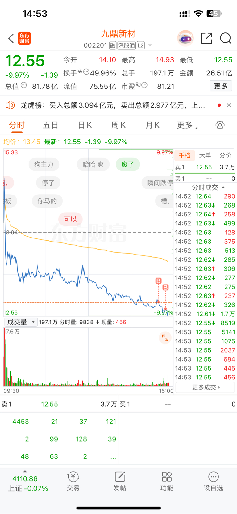 $九鼎新材(SZ002201)$