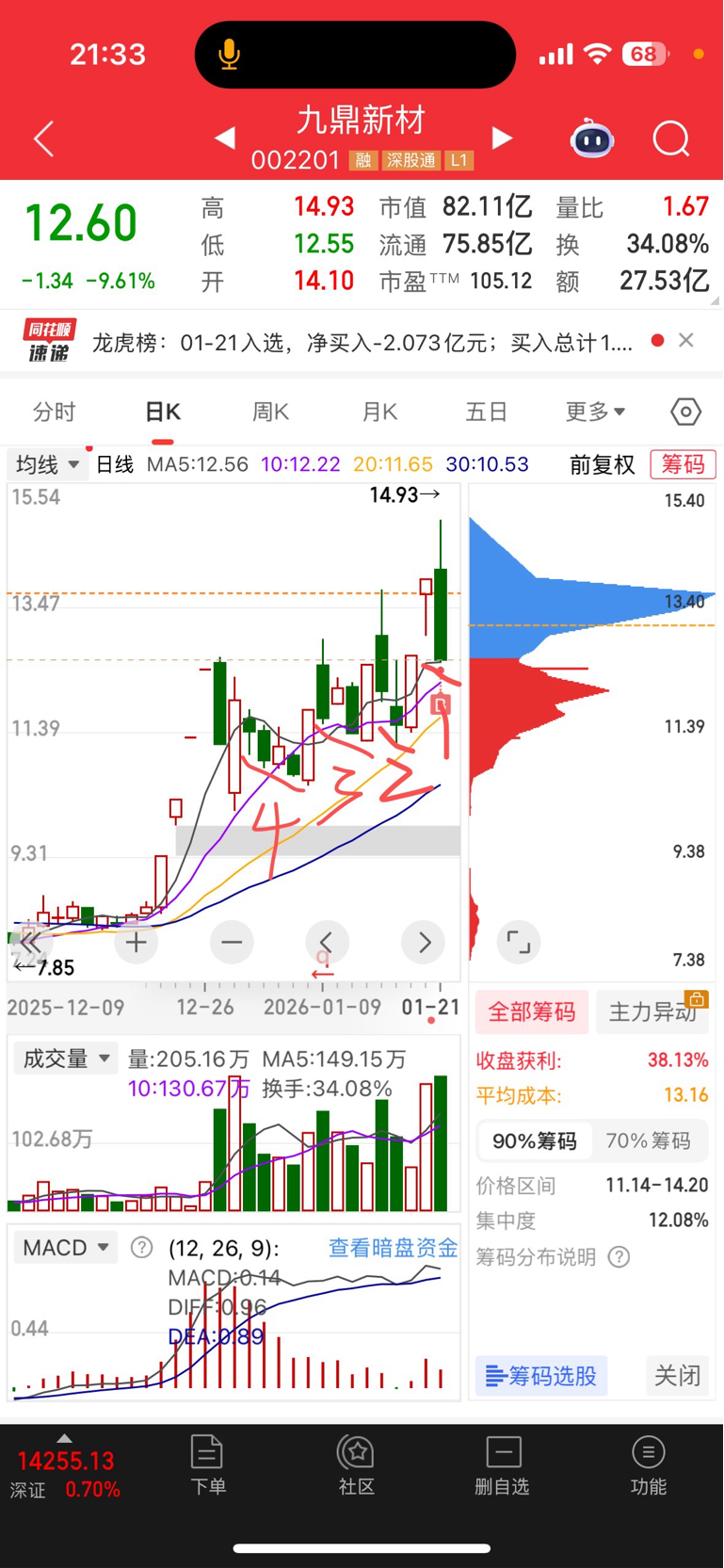$九鼎新材(SZ002201)$ 19.99才是顶,明天一字涨停顶上