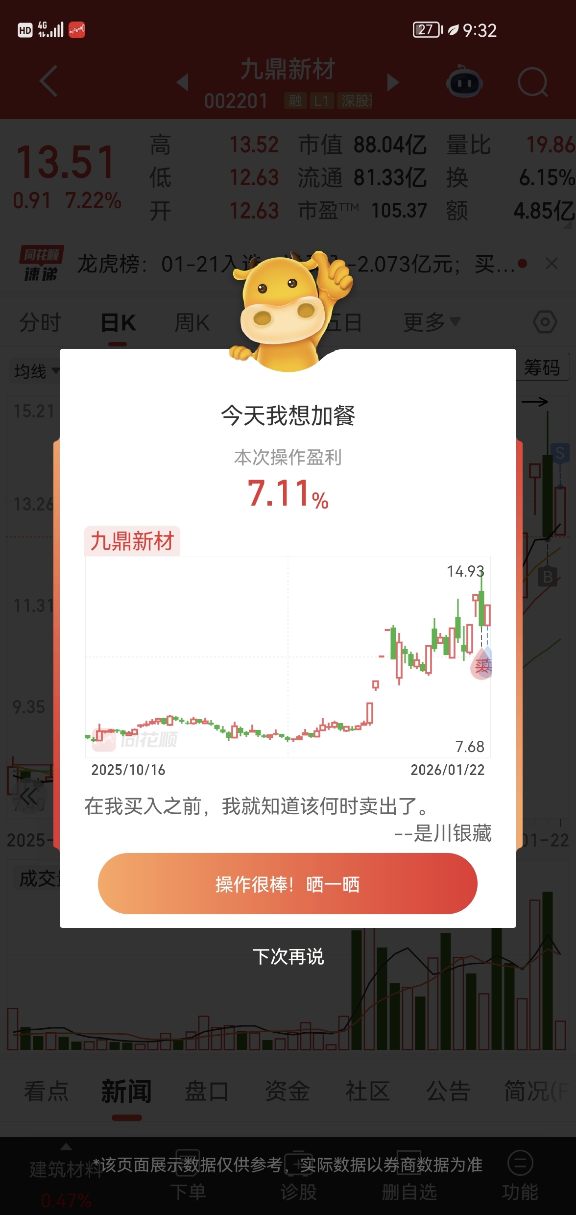 $九鼎新材(SZ002201)$ 就这样吧,卖飞了