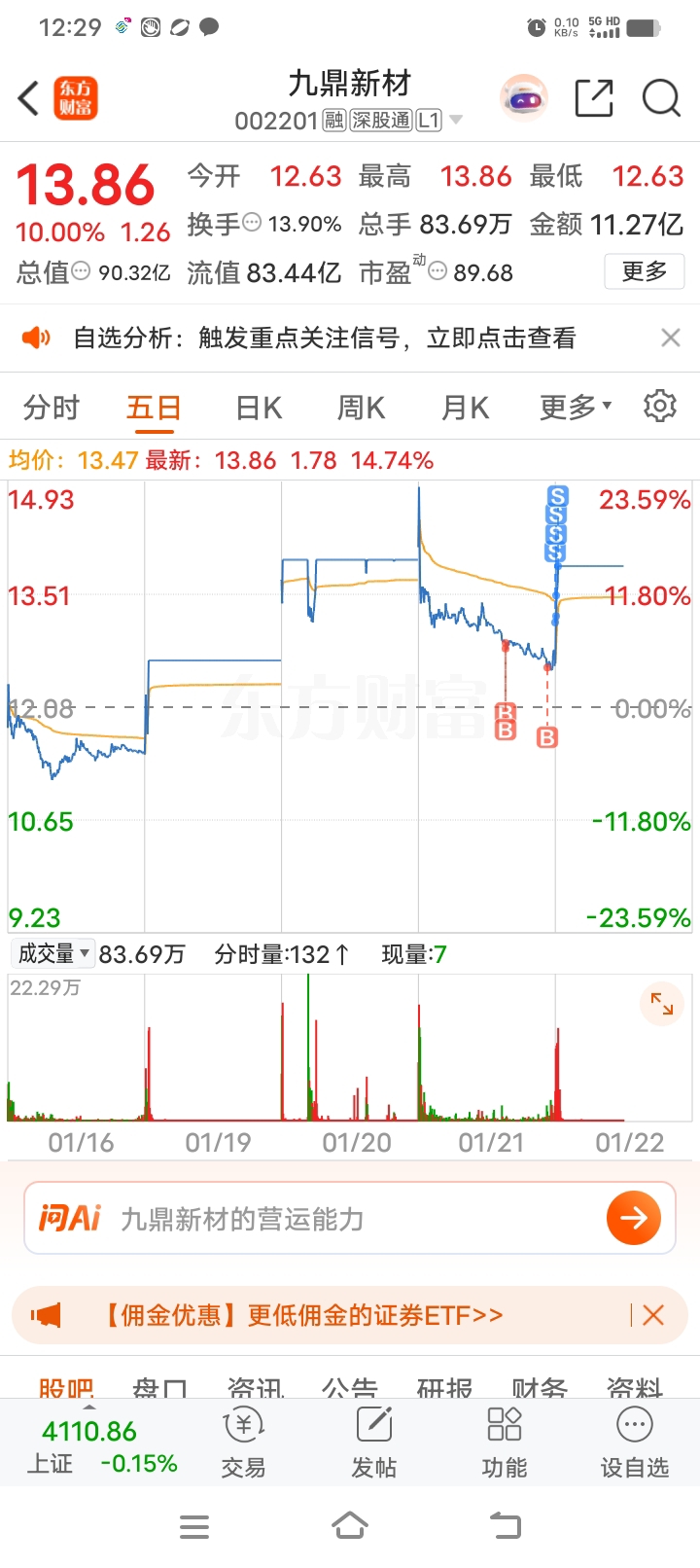 $九鼎新材(SZ002201)$ 昨天差点被你们吓个半死,今天开盘就开始跑