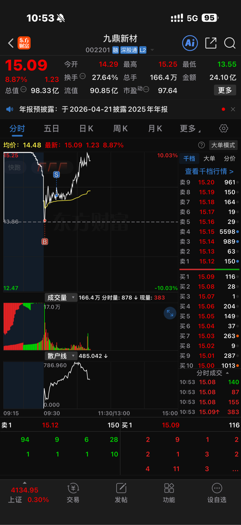 $九鼎新材(SZ002201)$ 鼎哥,今天抛弃了你,将会再见吧。我的耐心还是不够