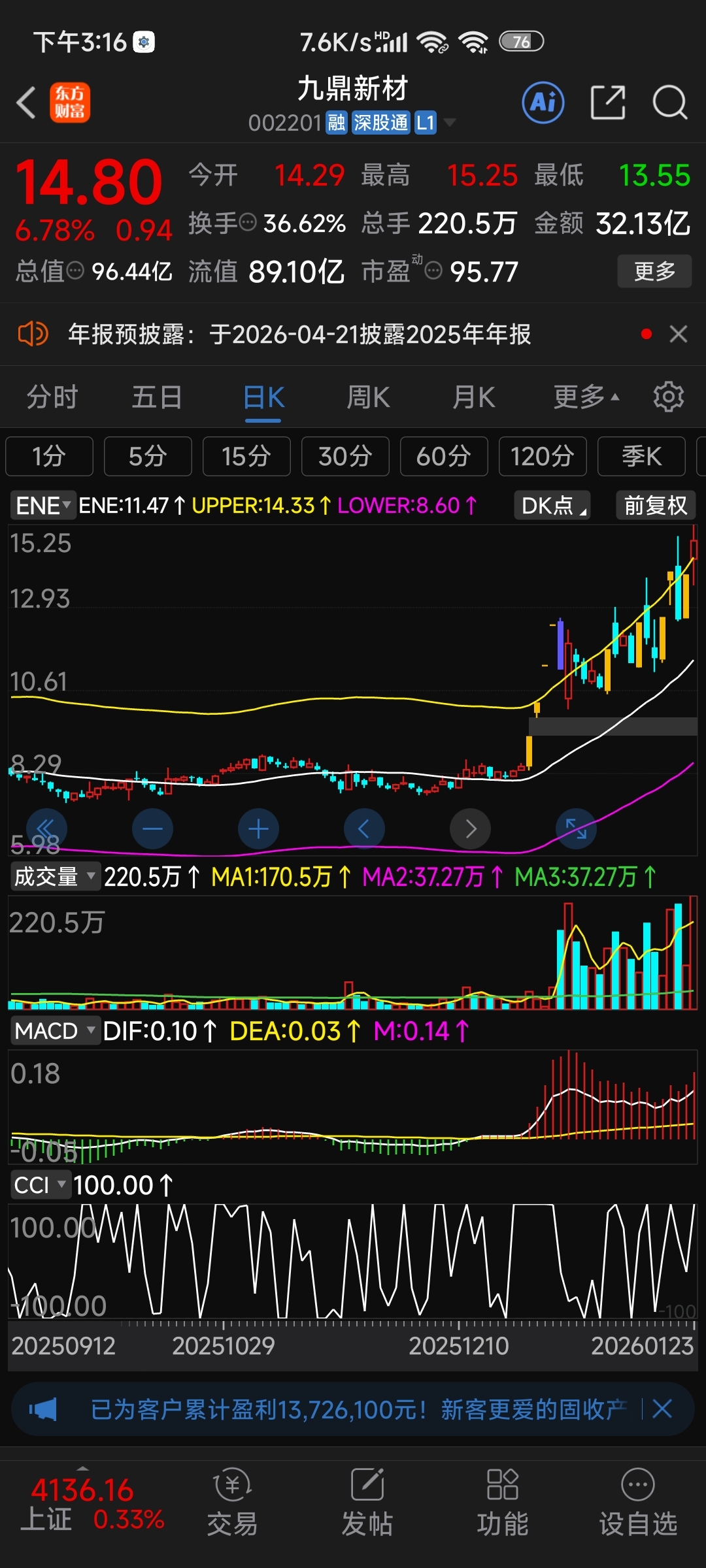 $九鼎新材(SZ002201)$ 这股有连板基因。今天不拉板后边还是想洗人。