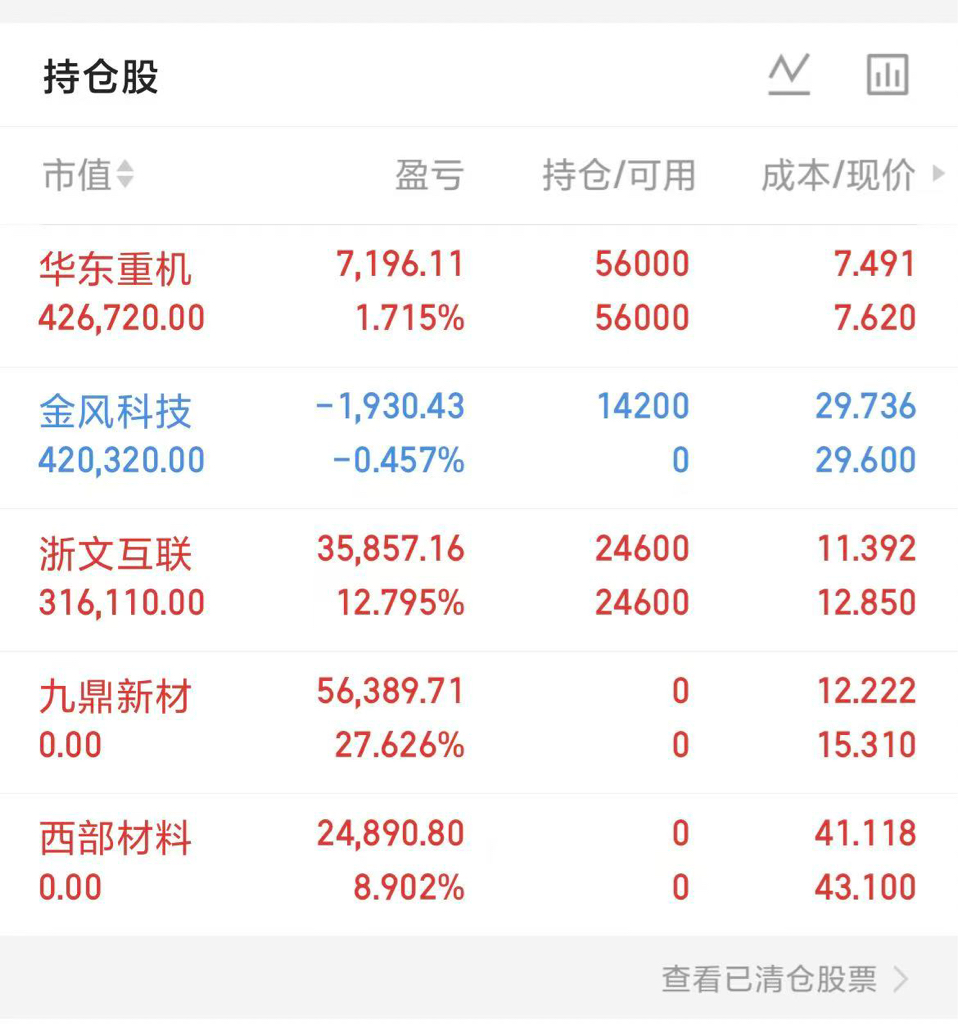 拿了一个多星期,吃将近30个点撤了西部材料吃8个点落袋为安和华东重机继续格局今日