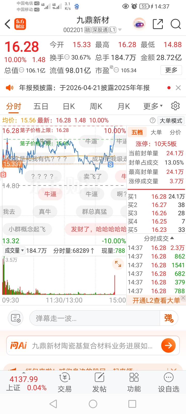 $九鼎新材(SZ002201)$ 我忍你一天了,又又又T飞了,cao!