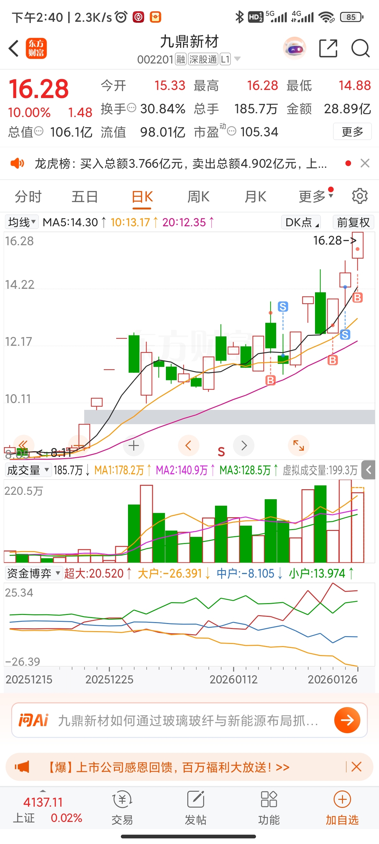 $九鼎新材(SZ002201)$ 妈耶早上买到最高点以为要完犊子,没想到竟然涨停了