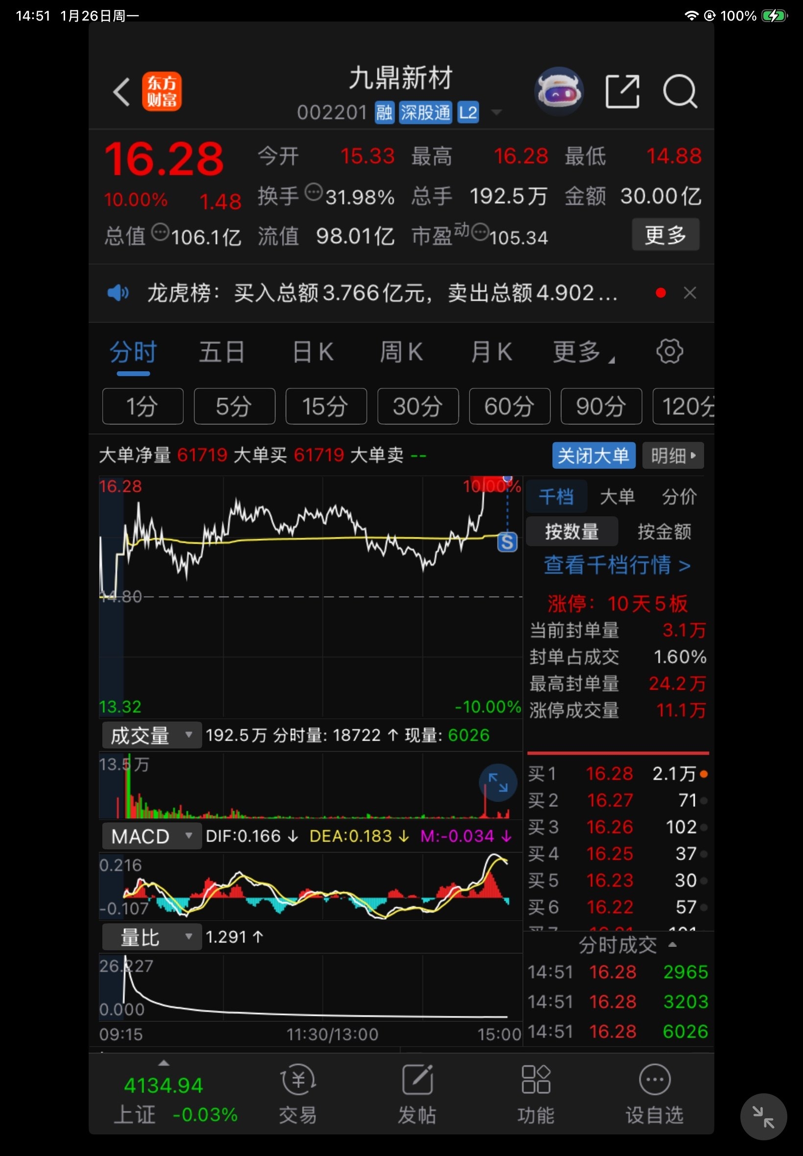 最后一点小底仓涨停板16.28元清了祝留下的继续赚大钱
