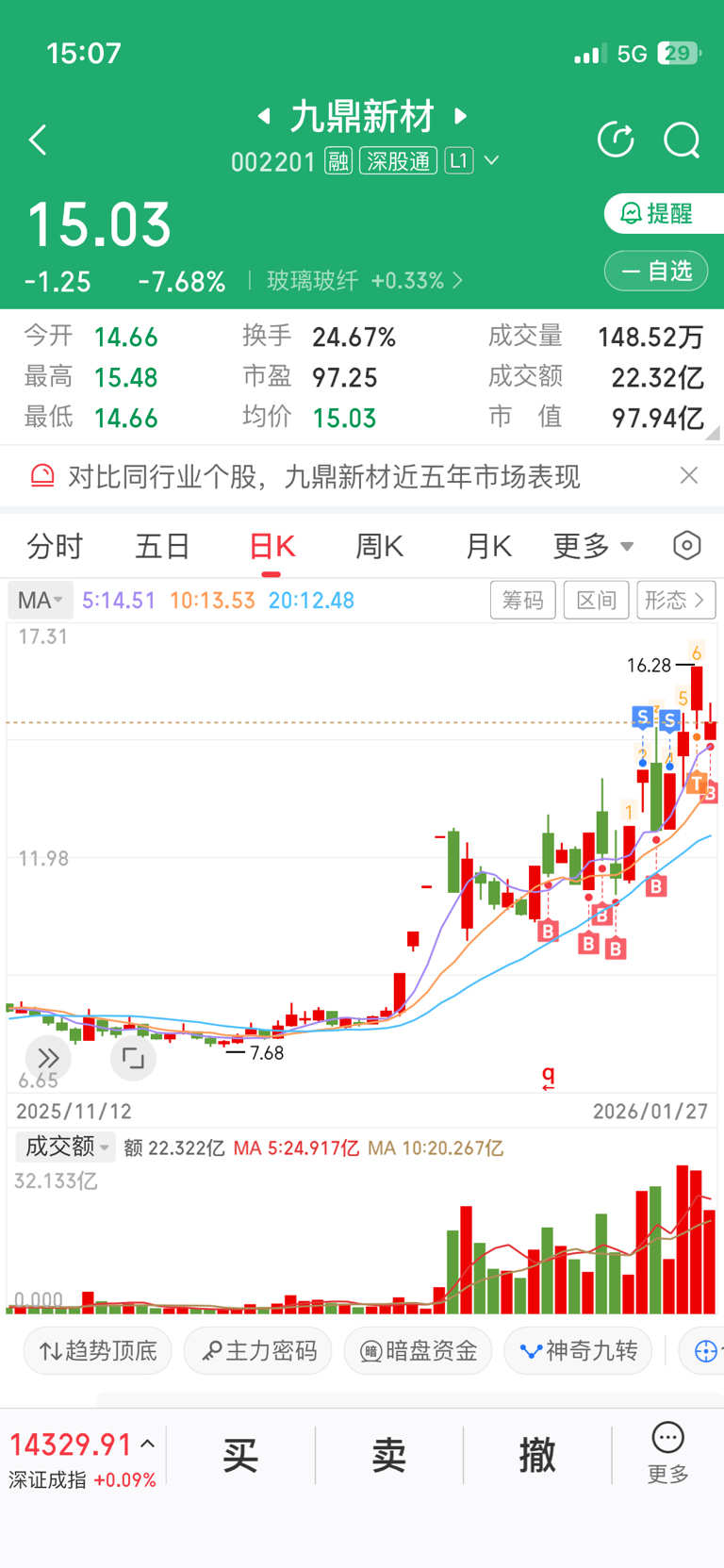 $九鼎新材(SZ002201)$ 早晚新高。明天水下继续加仓