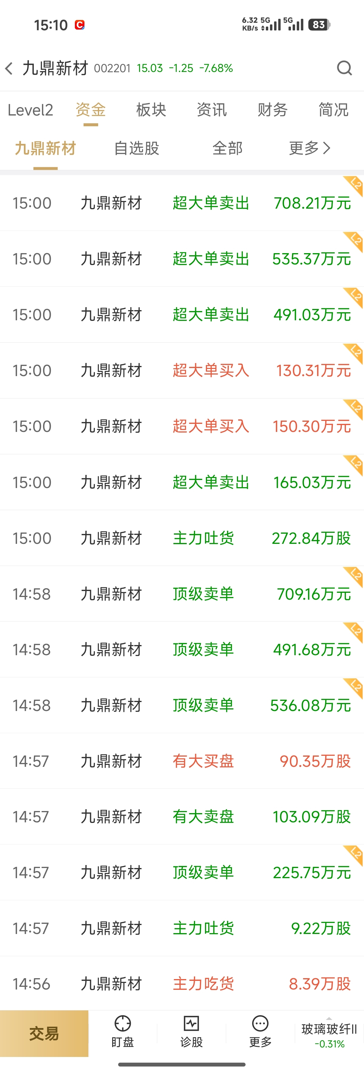 $九鼎新材(SZ002201)$ 尾盘跑的