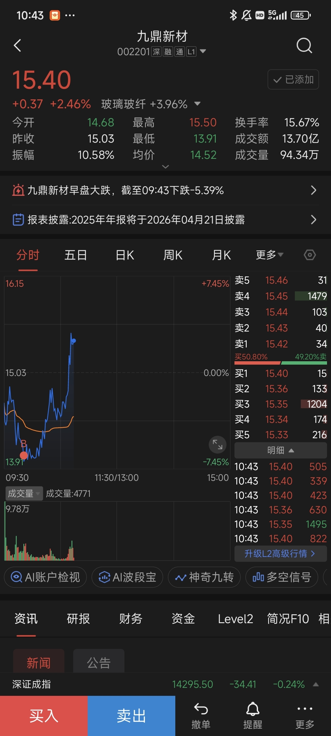 $九鼎新材(SZ002201)$ 今天买的位置还行