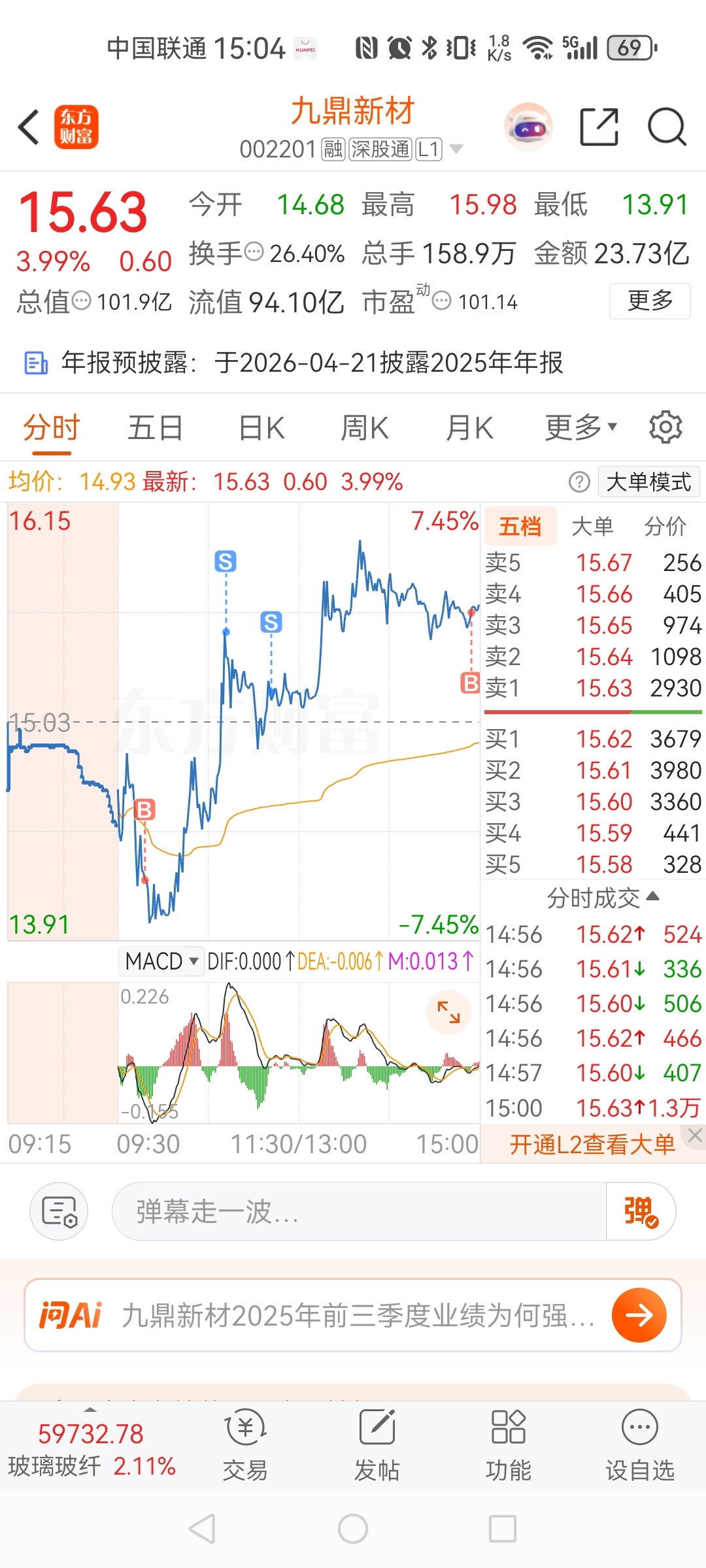 $九鼎新材(SZ002201)$ 今天水下低吸依然是踢狗,虽然有点恶心,但是坚持拿住还是可以的,这波拿到二十。