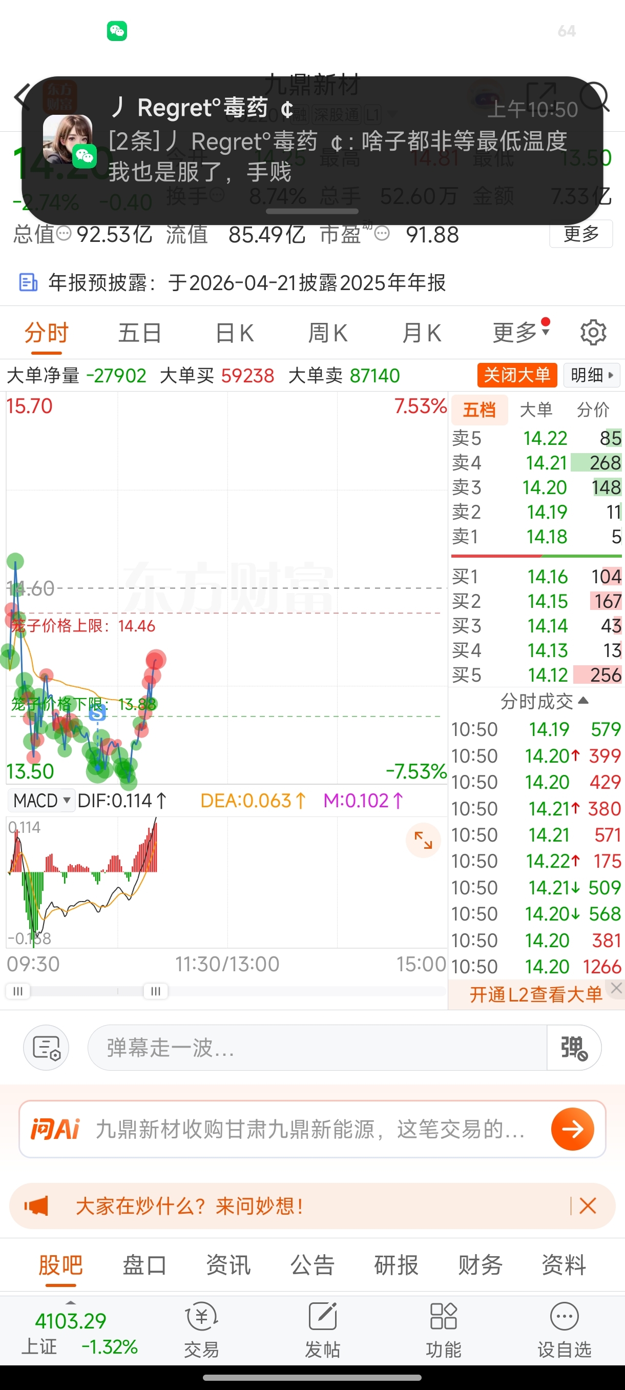 $九鼎新材(SZ002201)$ 亏咪吗俩万卖了,你涨了