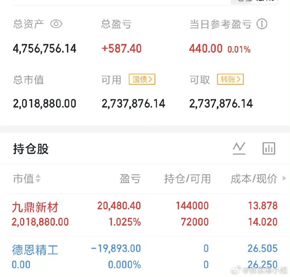 $德恩精工sz300780$出来的资金,我加入到了$九鼎新材sz002201$观