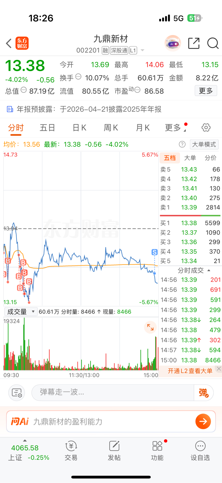 $九鼎新材(SZ002201)$ 你这个有毛病的票 ,你再不涨 ,立马清空 ,今天第27天了