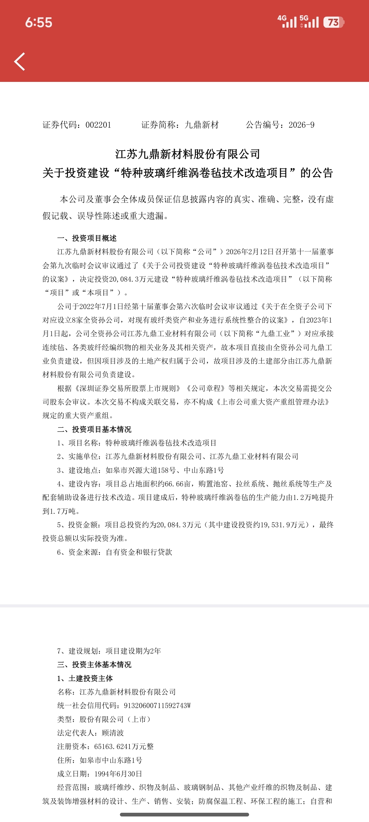 $九鼎新材(SZ002201)$