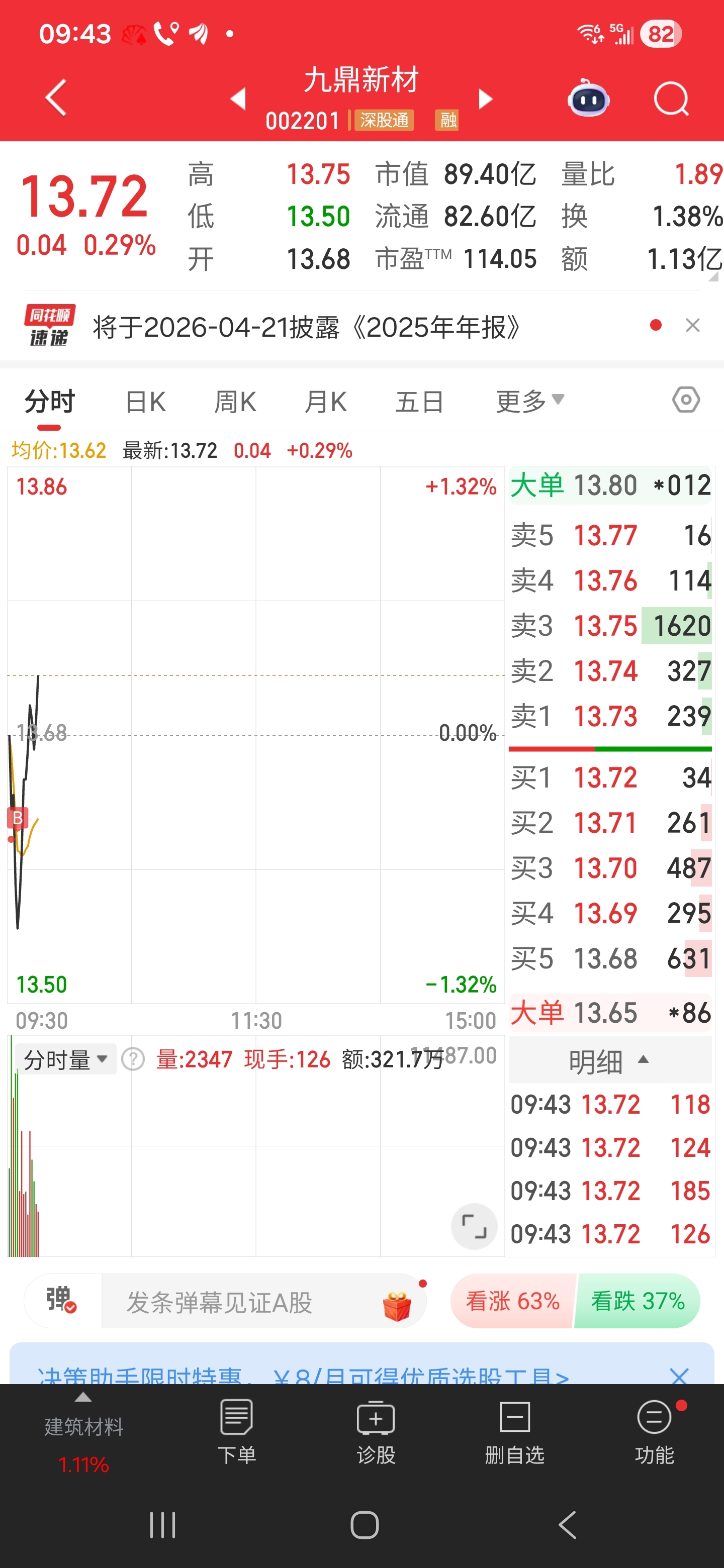 $九鼎新材(SZ002201)$ 要求不多,回去14.3附近,我还是喜欢大资金涨不停,不停涨,而不是柚子起哄天天拉板那种