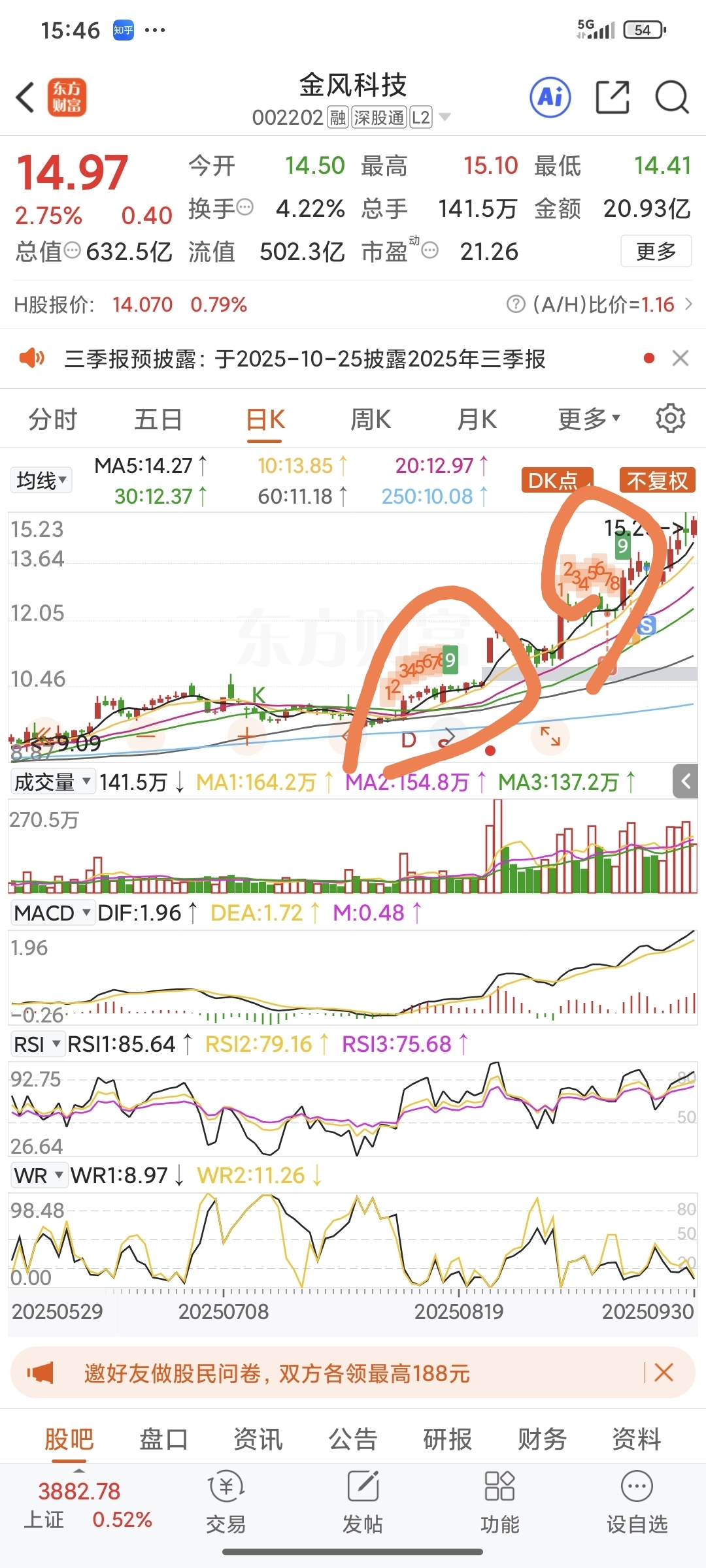 $金风科技(SZ002202)$ 谁知道K线图上的数字是怎么来的?是个什么意思呀