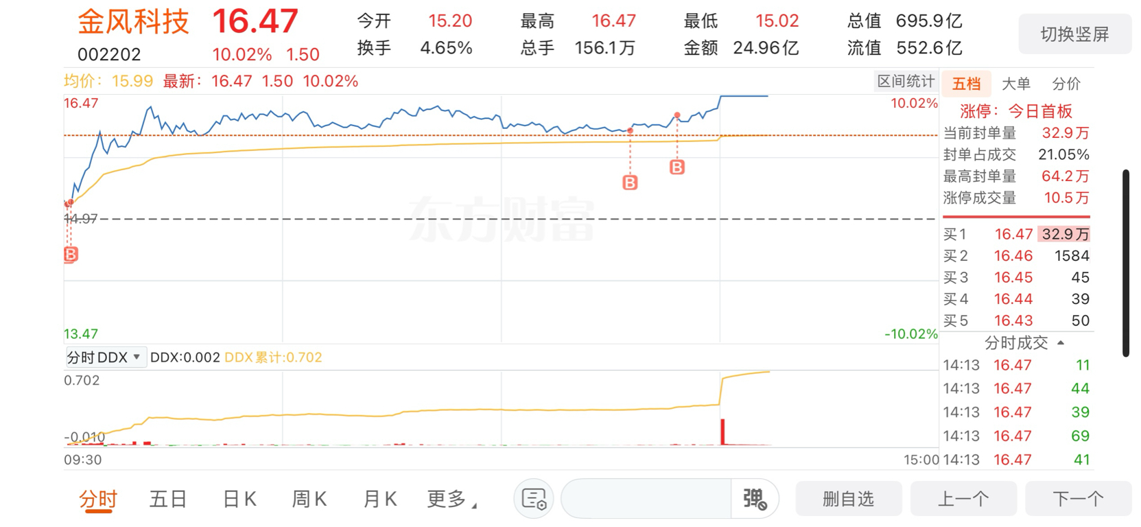 $金风科技(SZ002202)$ 助力涨停,高位加仓