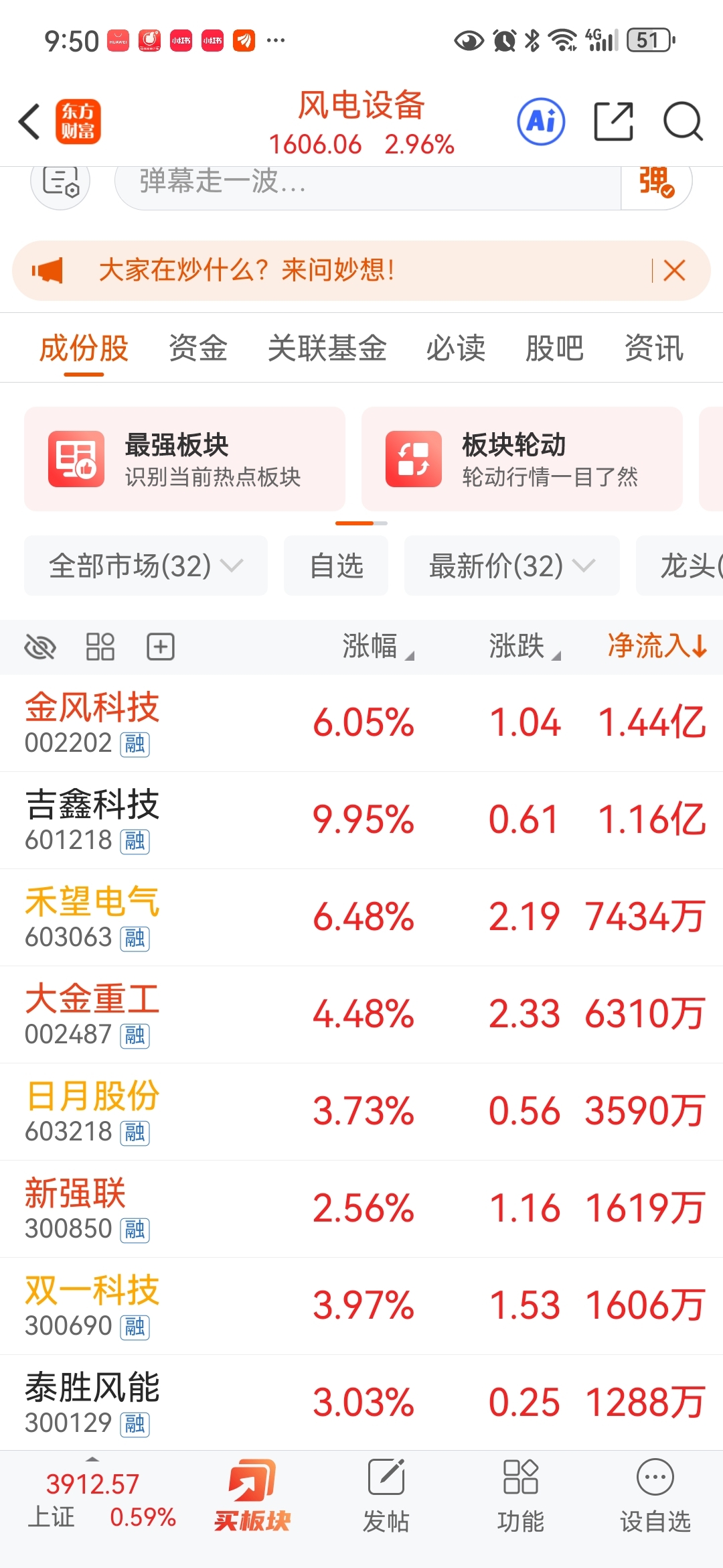 $金风科技(SZ002202)$ 龙头国家队资金净流入第一