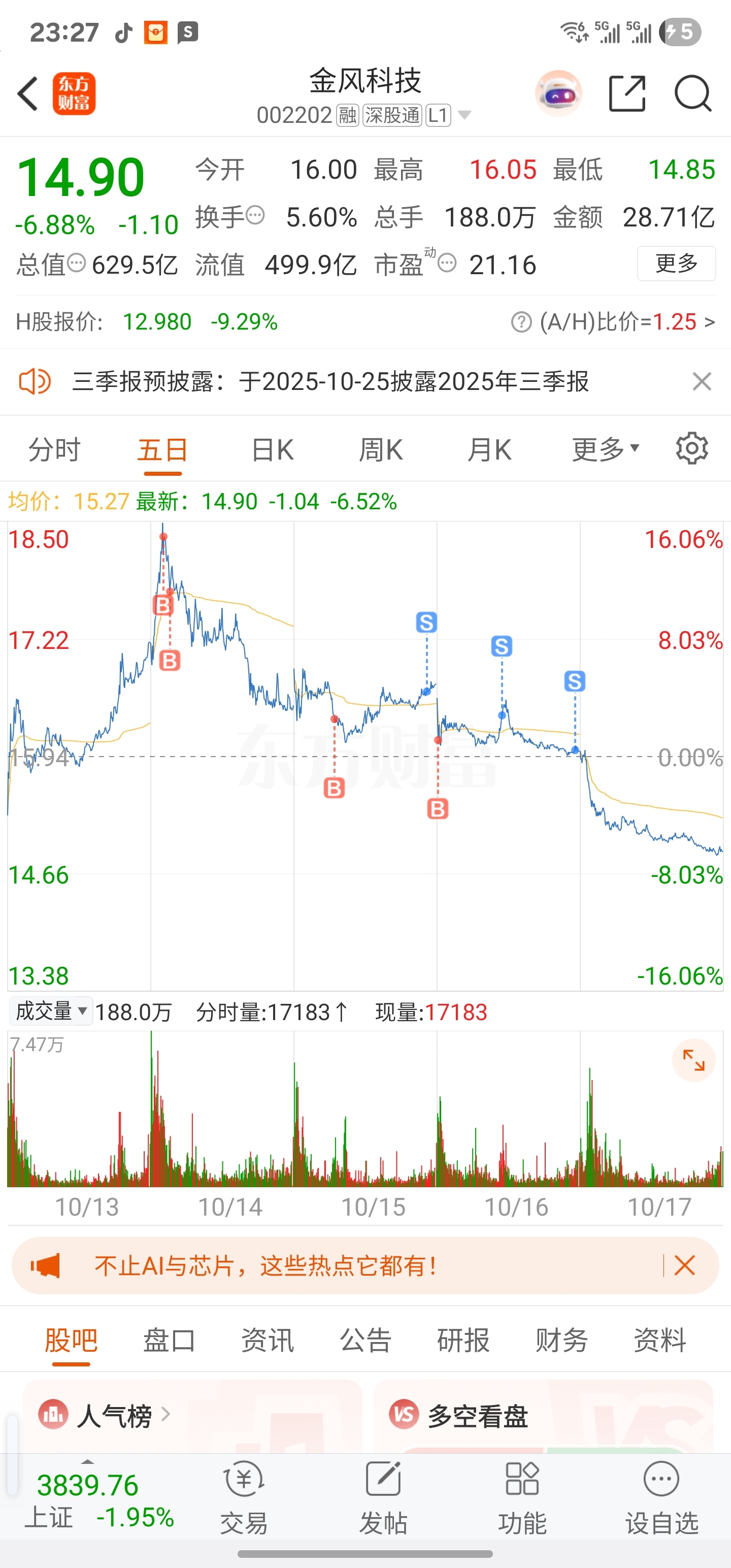 温馨提示: 1.根据《证券法》规定,禁止编造、传播虚假信息或者误导性信息,扰乱证券市场;2.用户在本社区发表的所有资料、言论等仅代表个人观点,与本网站立场无关,不对您构成任何投资建议。用户应基于自己的独立判断,自行决定证券投资并承担相应风险。《东方财富社区管理规定》