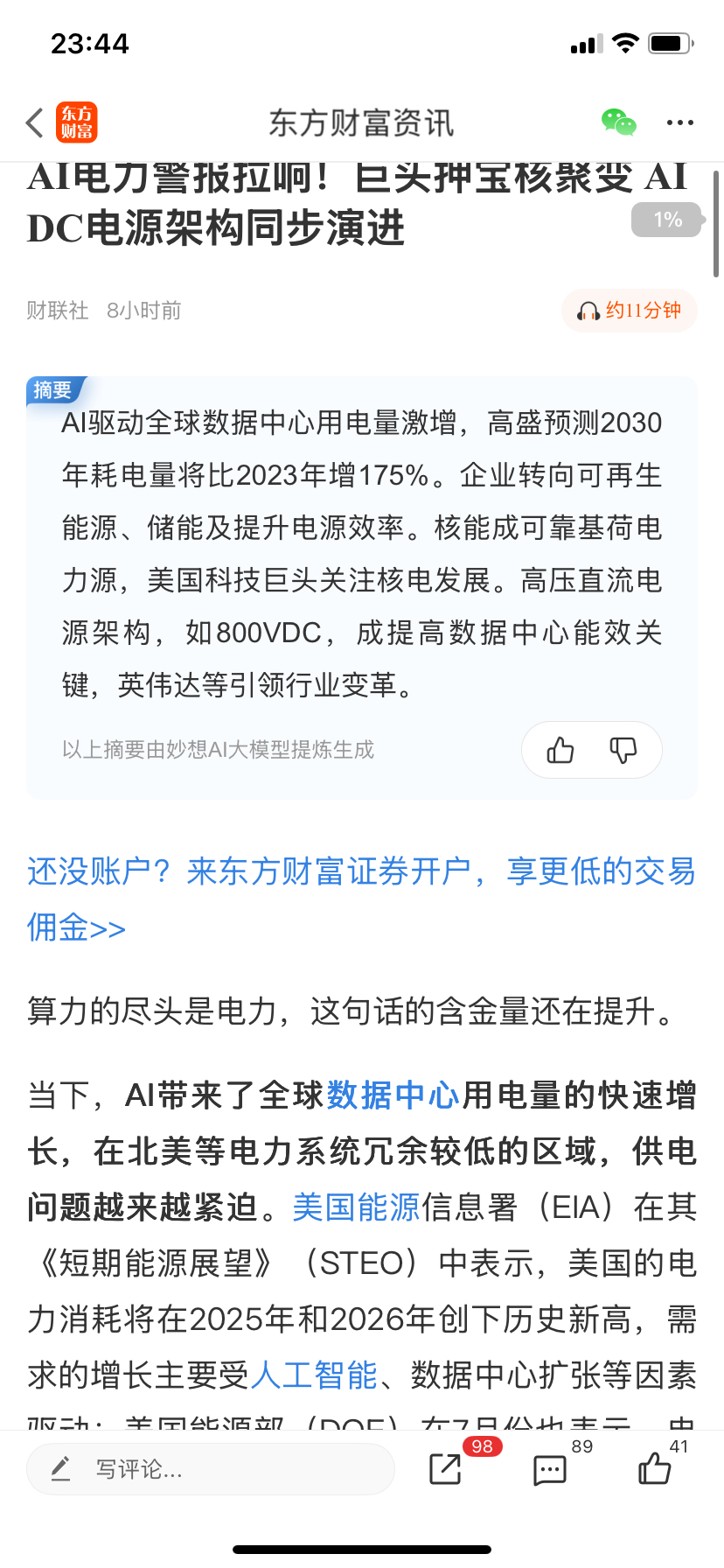 这才是真正的大利好,未来ai算力增加的用电。英伟达CEO黄仁勋也在近期采访谈到未