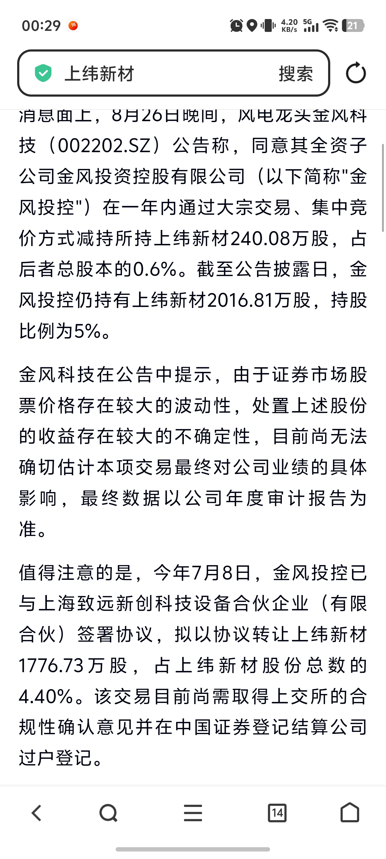 我不理解为什么会有人觉得三季度报会暴雷,爆也是爆升天雷吧。三季度前,金风可是有上纬2200多万股,三季度上纬可是从7块涨到现在90多。浅算一下这可是赚了17个亿的市值。。相当于去年整年的利润。。