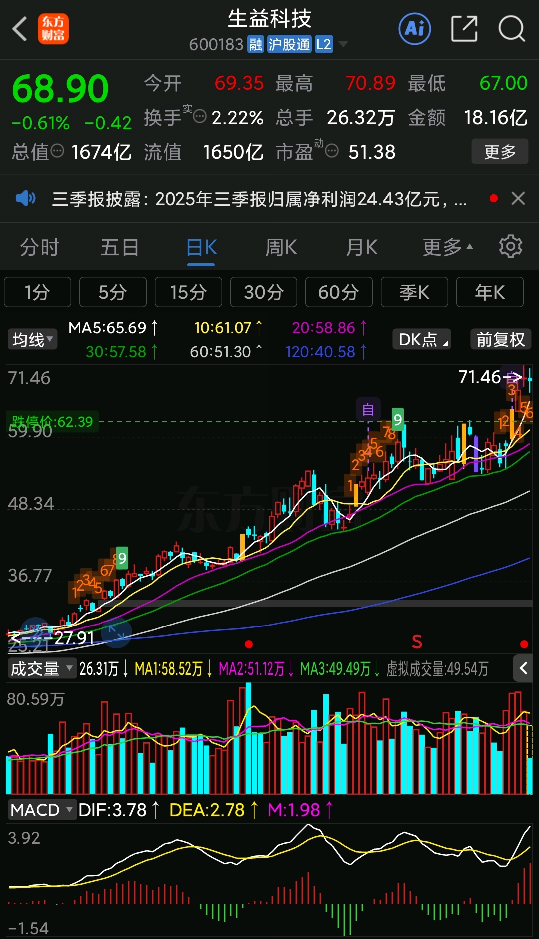 如果成交量还没缩量,那就可能回落横盘震荡一段时间再趋势向上。