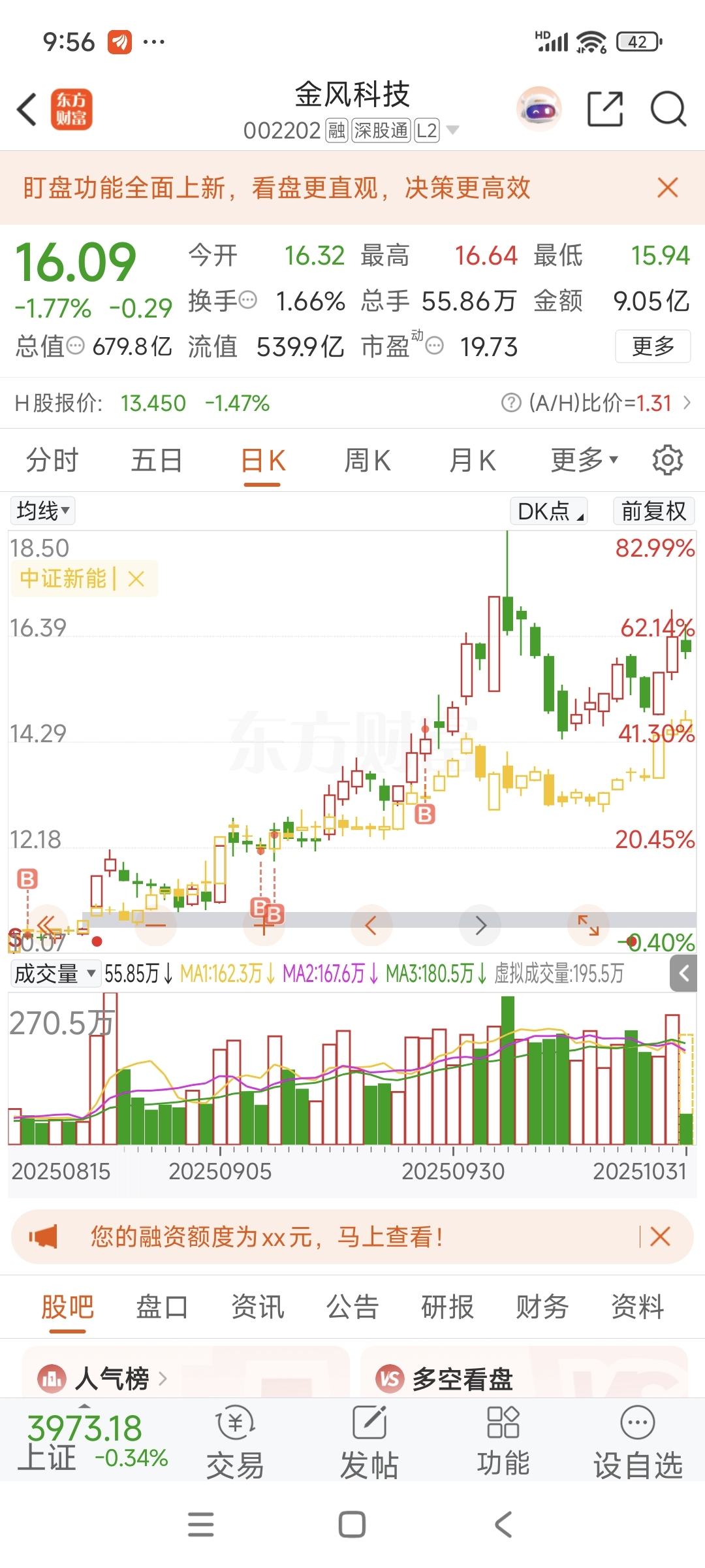 中证新能指数一直在向上涨,现在只不过是金风股价涨多了,在等中证新能指数,看k线叠