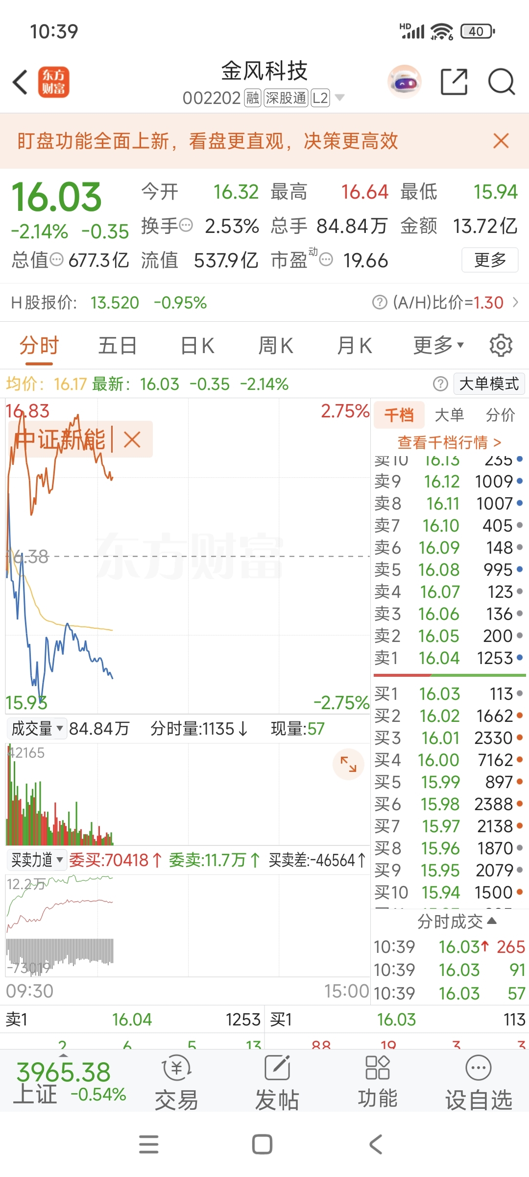 $金风科技(SZ002202)$ 看分时图,和中证新能指数基本吻合