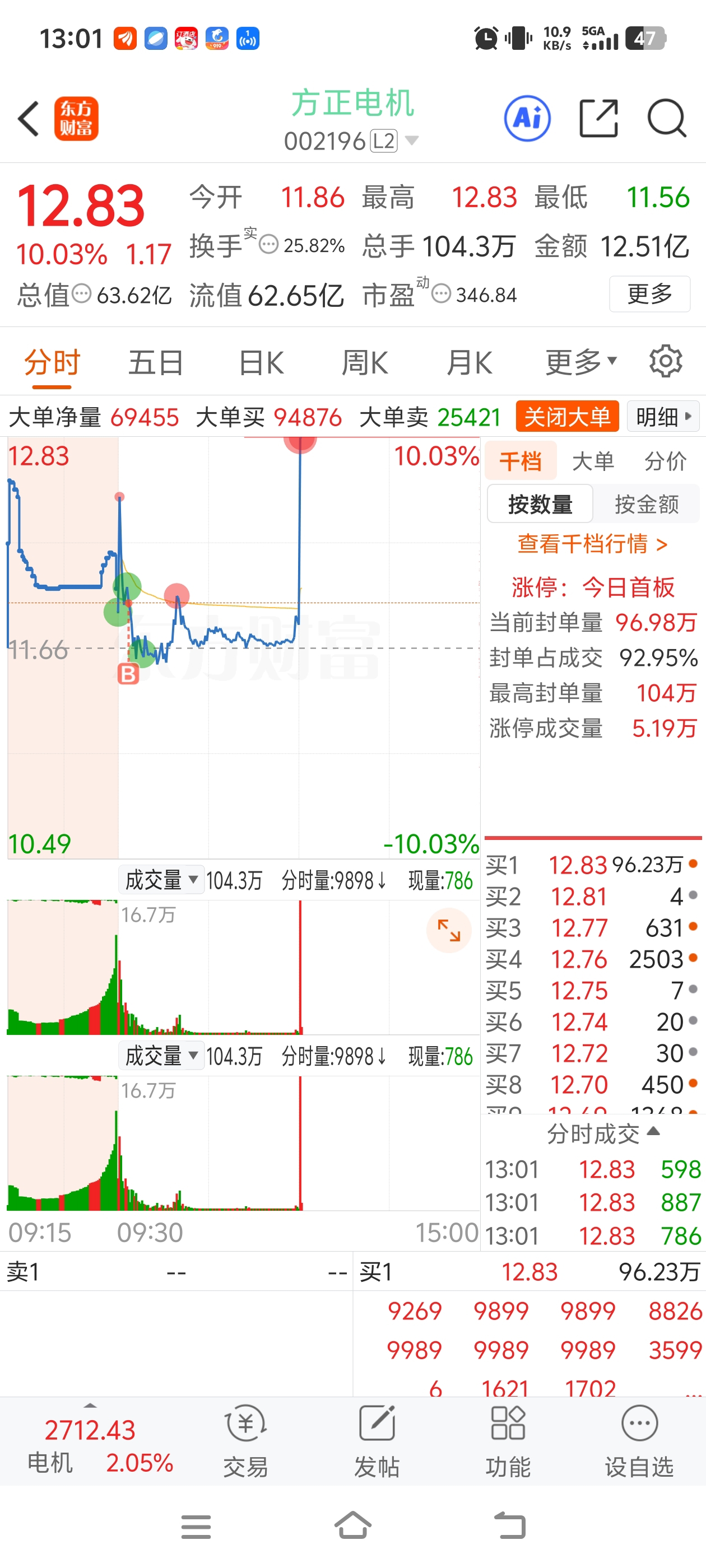 不好意思,铁铁们,我虽然16.6卖掉了,(但是有9%的利润。)我去方正电机了,没