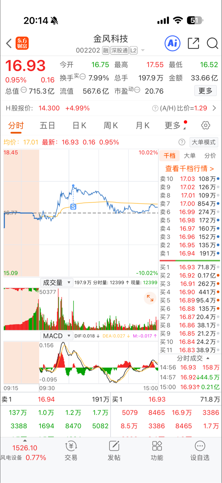 $金风科技(SZ002202)$ 今天工作忙,挂了S忘挂B了,择机买回。还是一句话,持股等风来