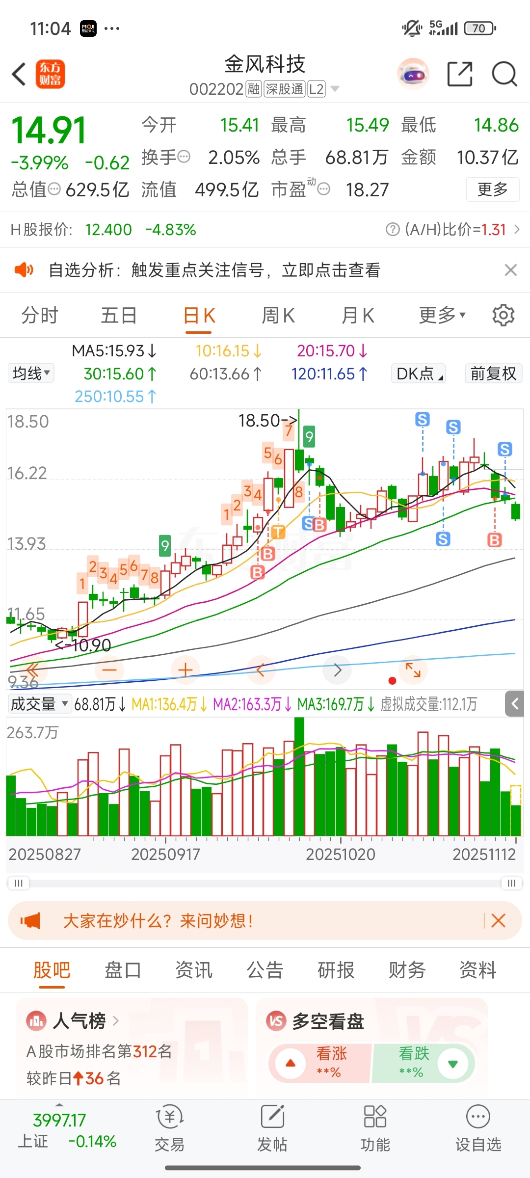 $金风科技(SZ002202)$ 这票能赚钱,不过吃操作