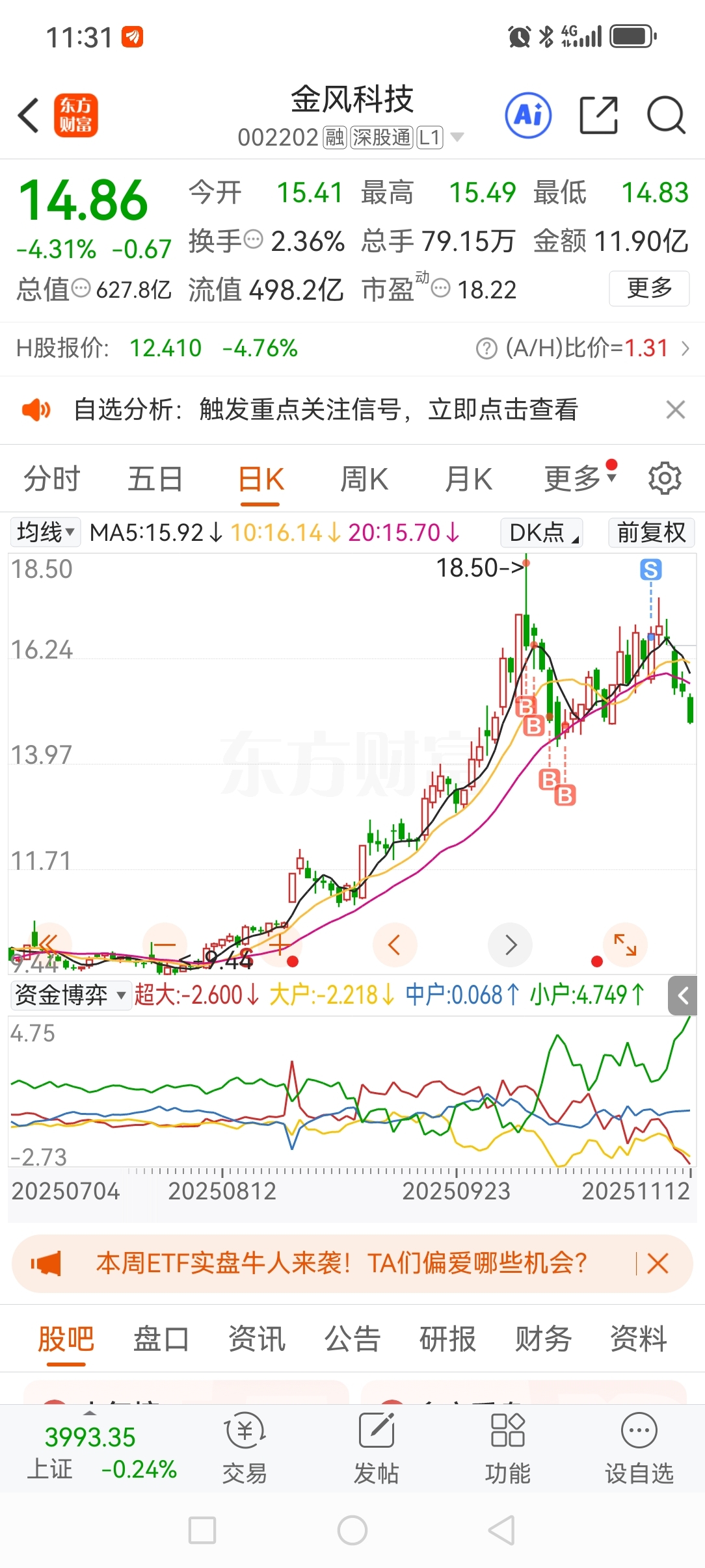 上周卖了,先观察一下,新能源还是有希望的,看能否跌破14元了