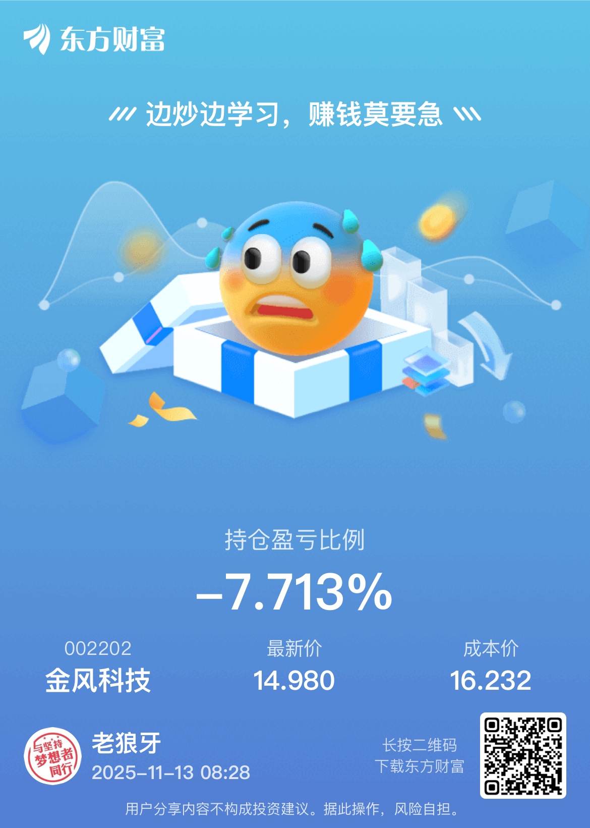 我是醉了,每次来金风赚3%就得走吗?这一次利空完了。我要长线试下!